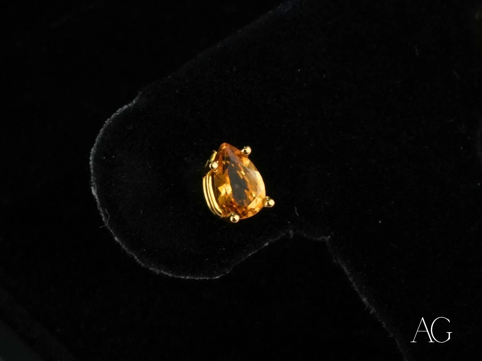 • Genuine Citrine Stones – Featuring high-quality, ethically sourced pear-cut citrine gemstones that shimmer with a captivating golden glow, adding warmth and undeniable charm to your look. The vibrant color of citrine is believed to promote prosperity and joy.