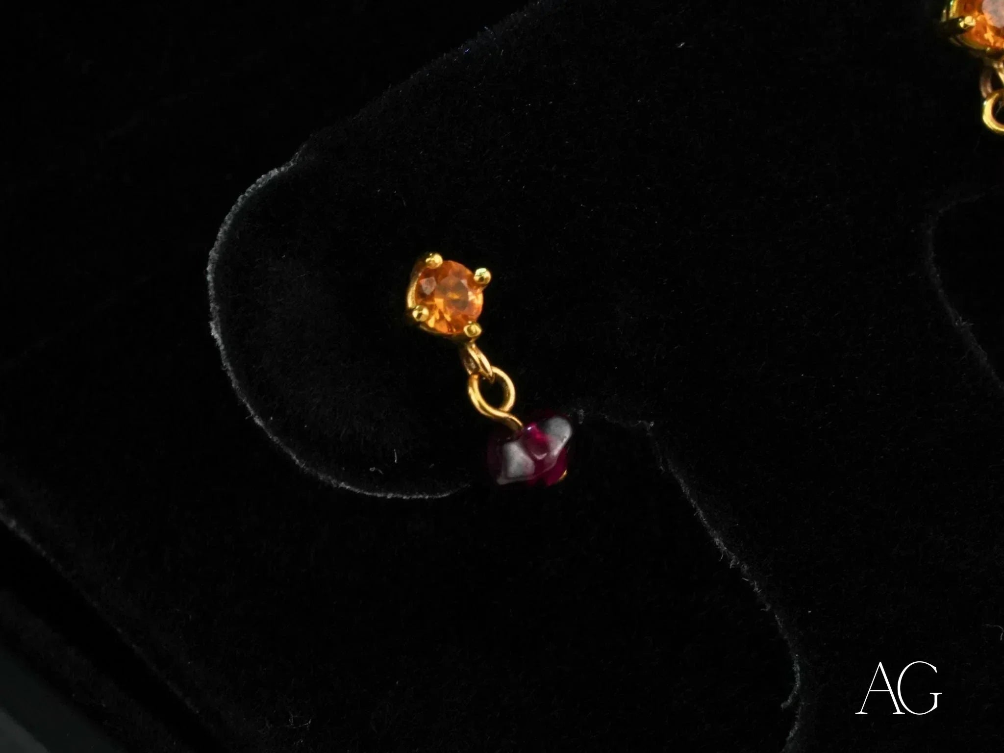 Citrine symbolizes positivity and abundance, while rubellite (red tourmaline) embodies passion, love, and energy, making these Art Gold earrings a meaningful gift.