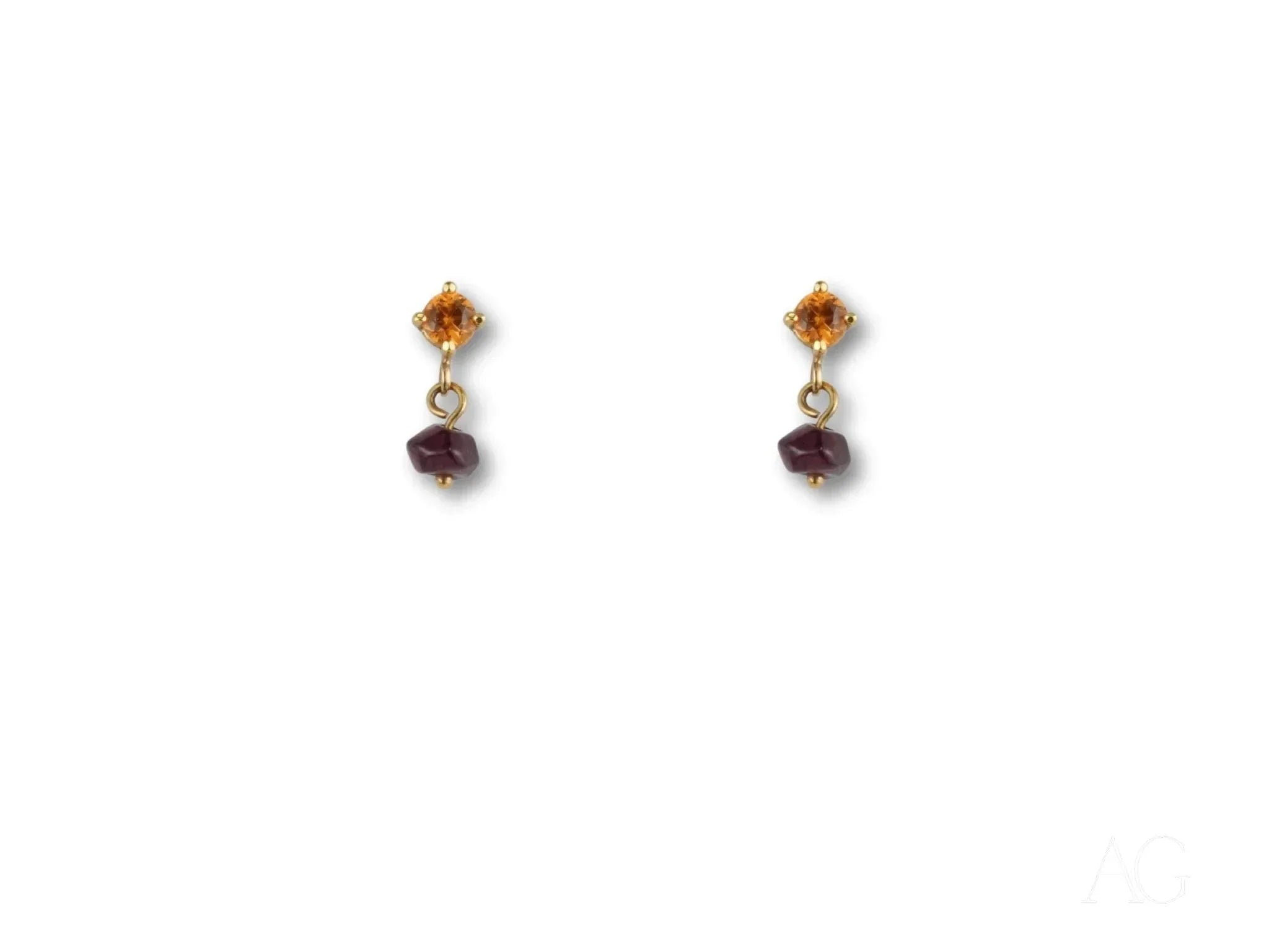 Sunset Duo: 18k Gold Citrine & Rubellite Earrings