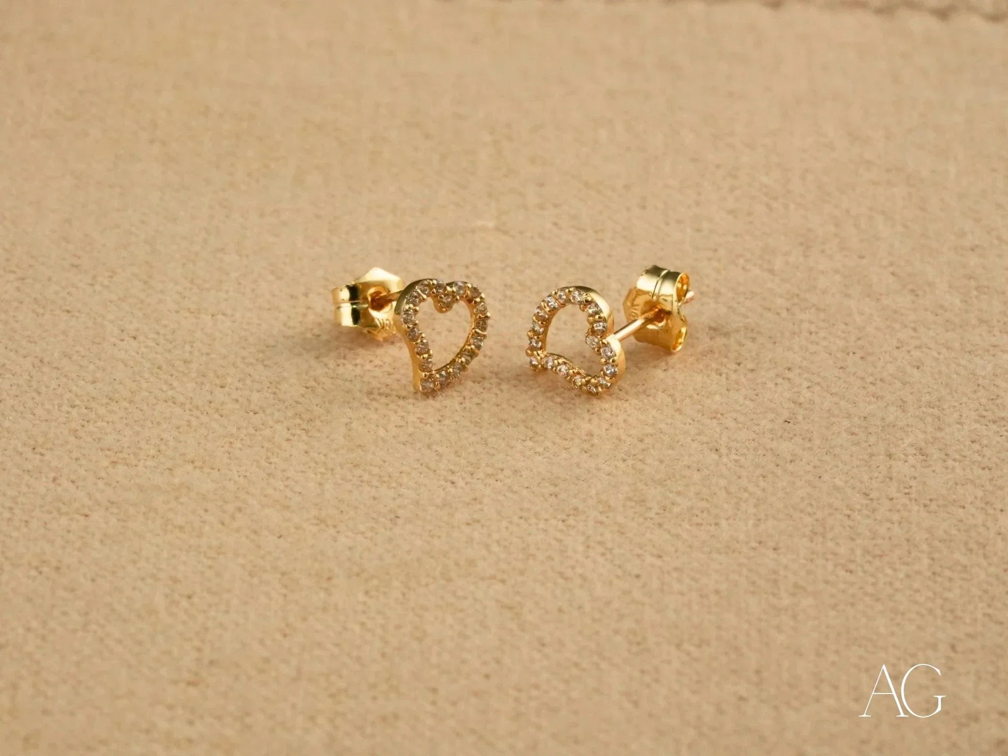 Sparkling Heart: 18k Gold CZ Heart Earrings
