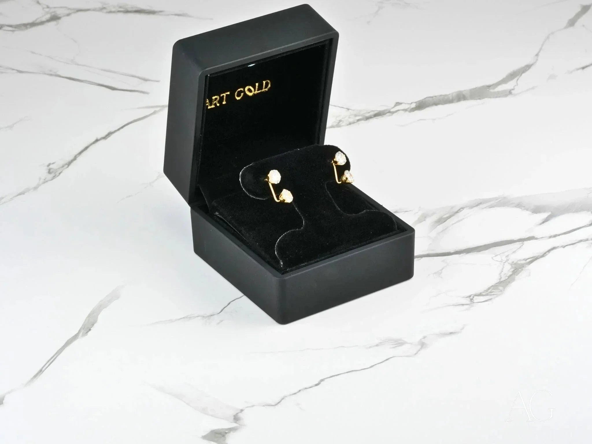 Elevate your elegance and capture attention with these exquisite 18K gold double CZ earrings, a true embodiment of art gold jewelry. Designed with a modern yet timeless appeal, these dazzling earrings feature two radiant cubic zirconia stones per earring, creating a mesmerizing layered sparkle effect that's sure to turn heads. The 18k gold double design offers double the brilliance and a chic, layered look, perfect for adding a touch of glamour to any outfit, from casual days to unforgettable red-carpet moments. Experience the luxurious feel of 18K gold and the captivating brilliance of expertly cut CZ stones, designed to catch the light and dance with every movement.