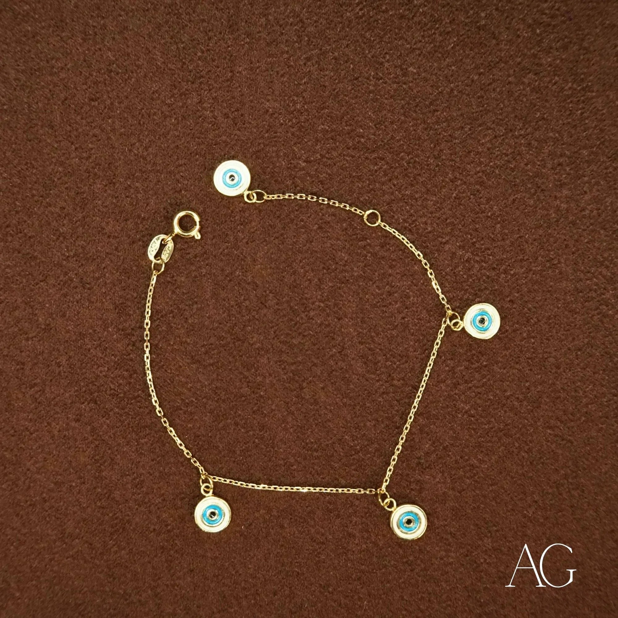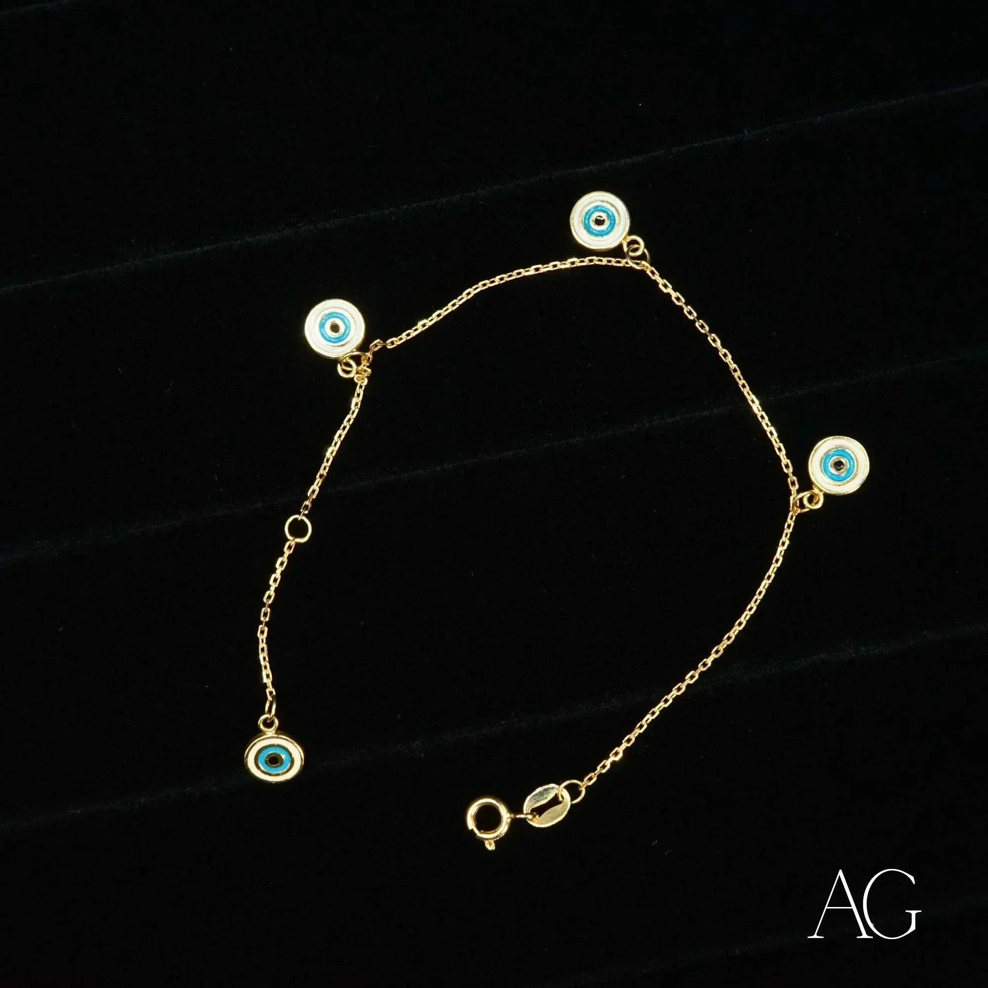 Elegance and Protection for Every Occasion: This 18k Gold Evil Eye Bracelet effortlessly blends practicality and timeless style, making it a perfect accessory for everyday wear. Its subtle yet significant charm adds a layer of unseen protection, accompanying your little one through daily discoveries and special milestones. This bracelet is more than just jewelry; it's a symbol of your love, a wish for their well-being, and a beautiful piece of art gold they'll treasure.