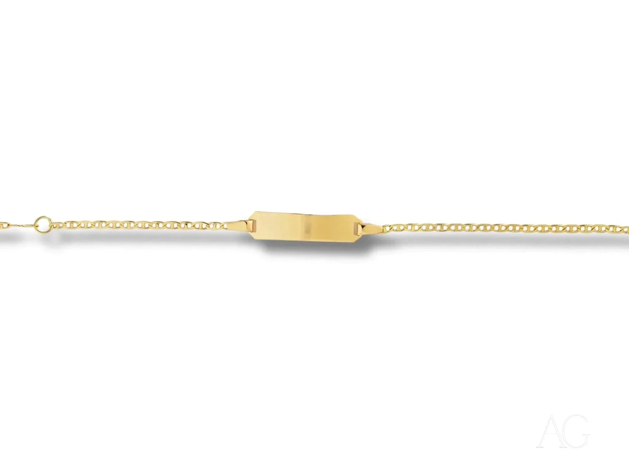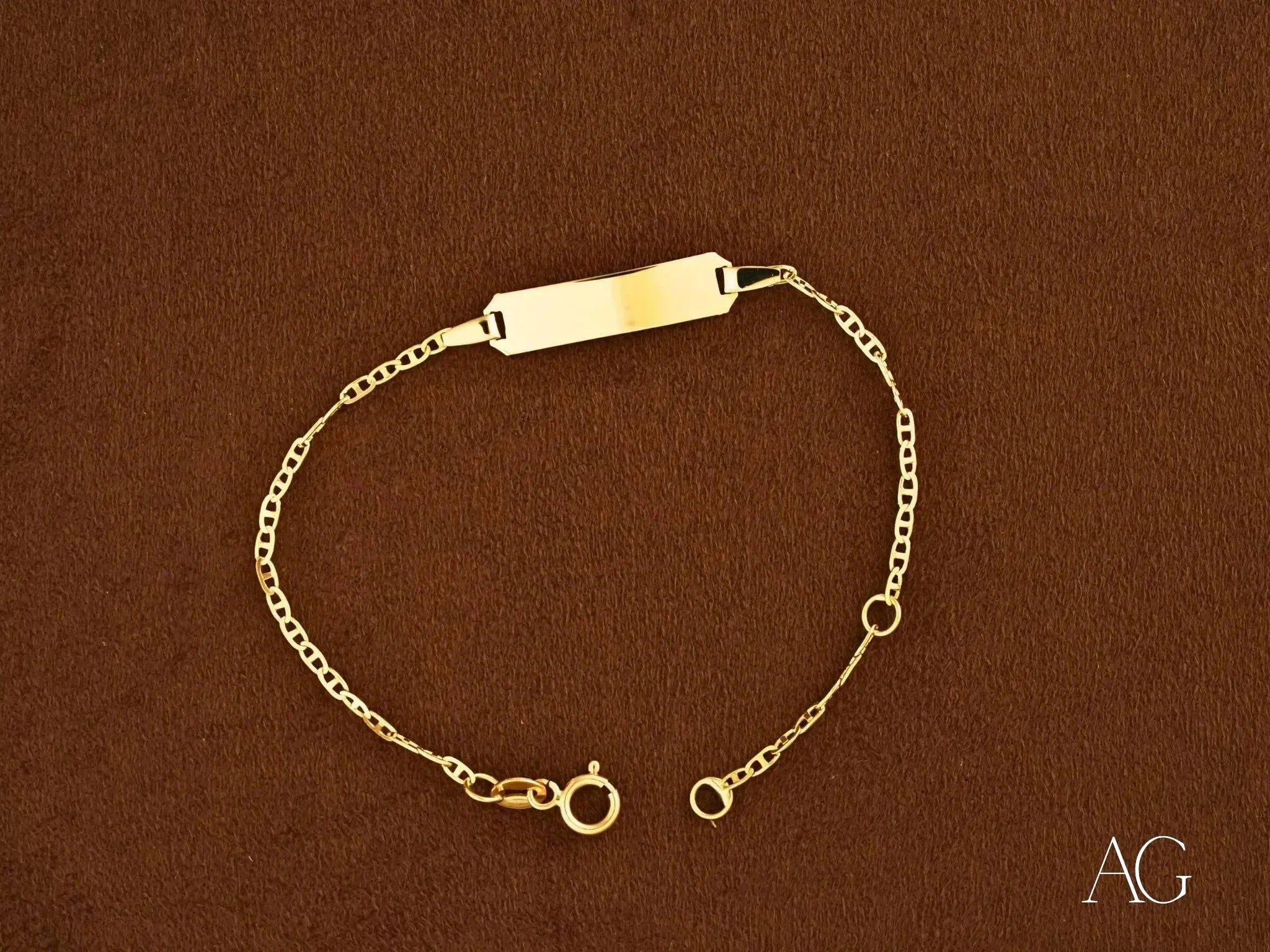 Customizable ID Plate with Complimentary Engraving: Transform this bracelet into a unique treasure with our complimentary engraving. Add a name, initials, a special date, or a short message to create a truly one-of-a-kind keepsake.Sleek and Timeless Design: The minimalist design exudes a subtle sophistication that complements any outfit, making this kid's id bracelet perfect for everyday wear, special occasions, or even as a cherished heirloom passed down through generations. Secure Spring Ring Lock: The robust spring ring lock provides a secure and reliable closure, ensuring the bracelet stays safely on your child's wrist, even during active play. This added safety feature offers invaluable peace of mind for parents.Lightweight and Comfortable for All-Day Wear: Crafted with comfort in mind, this 1.3-gram bracelet is feather-light and won't weigh down little wrists. Your child will hardly notice they're wearing it, allowing them to play and explore with unrestricted freedom.