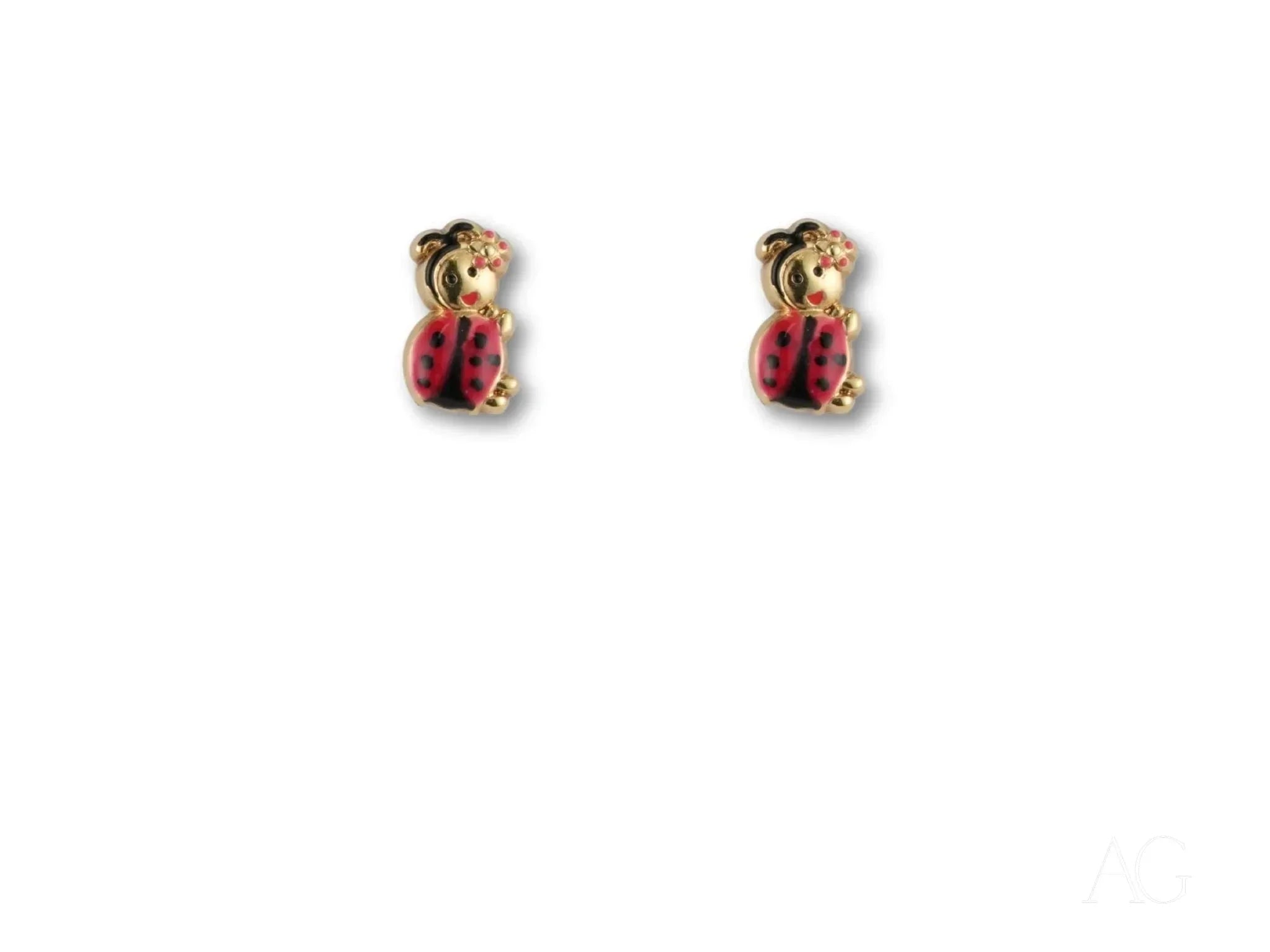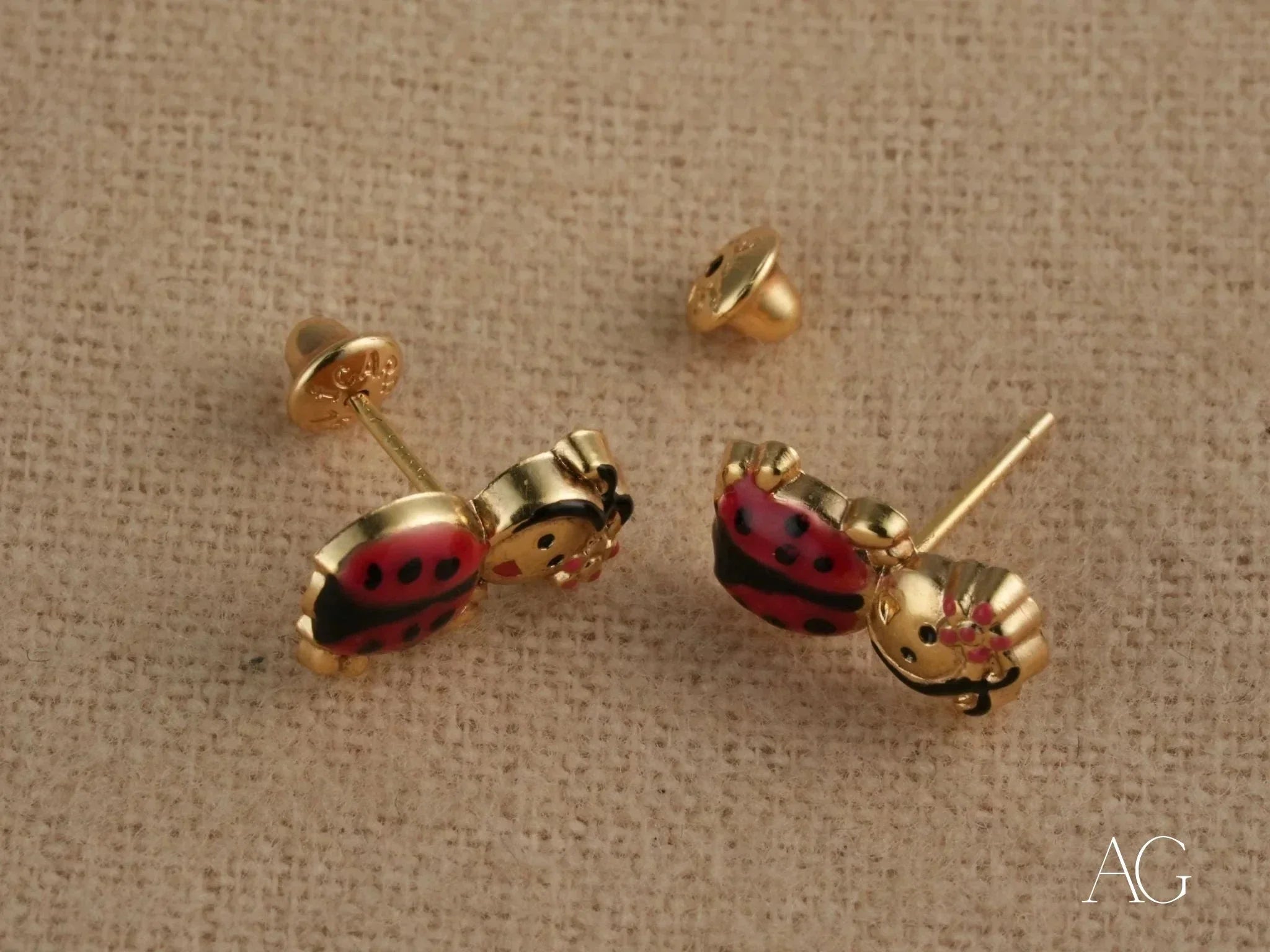 Lucky Charm: 18k Gold Ladybug Stud Earrings for Kids