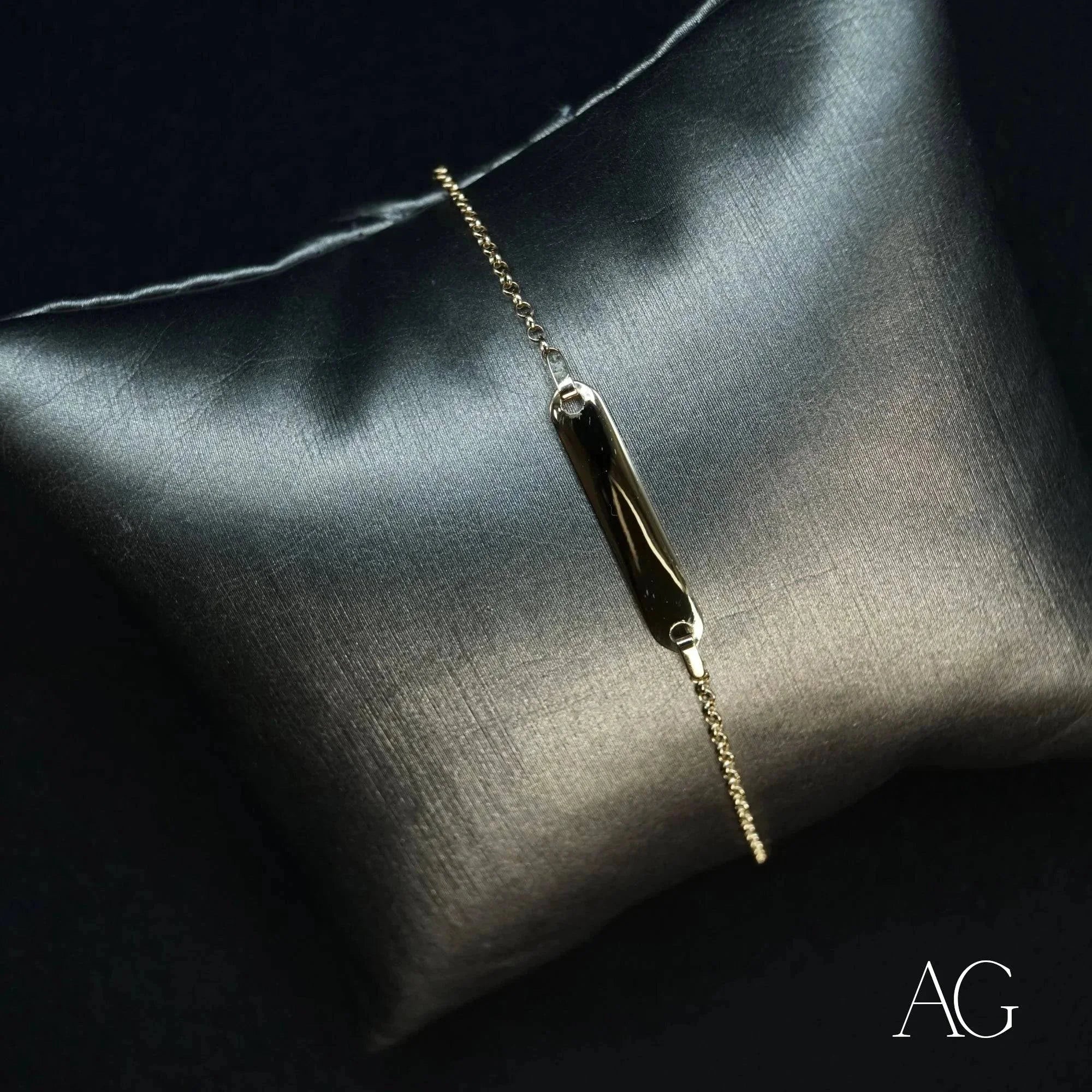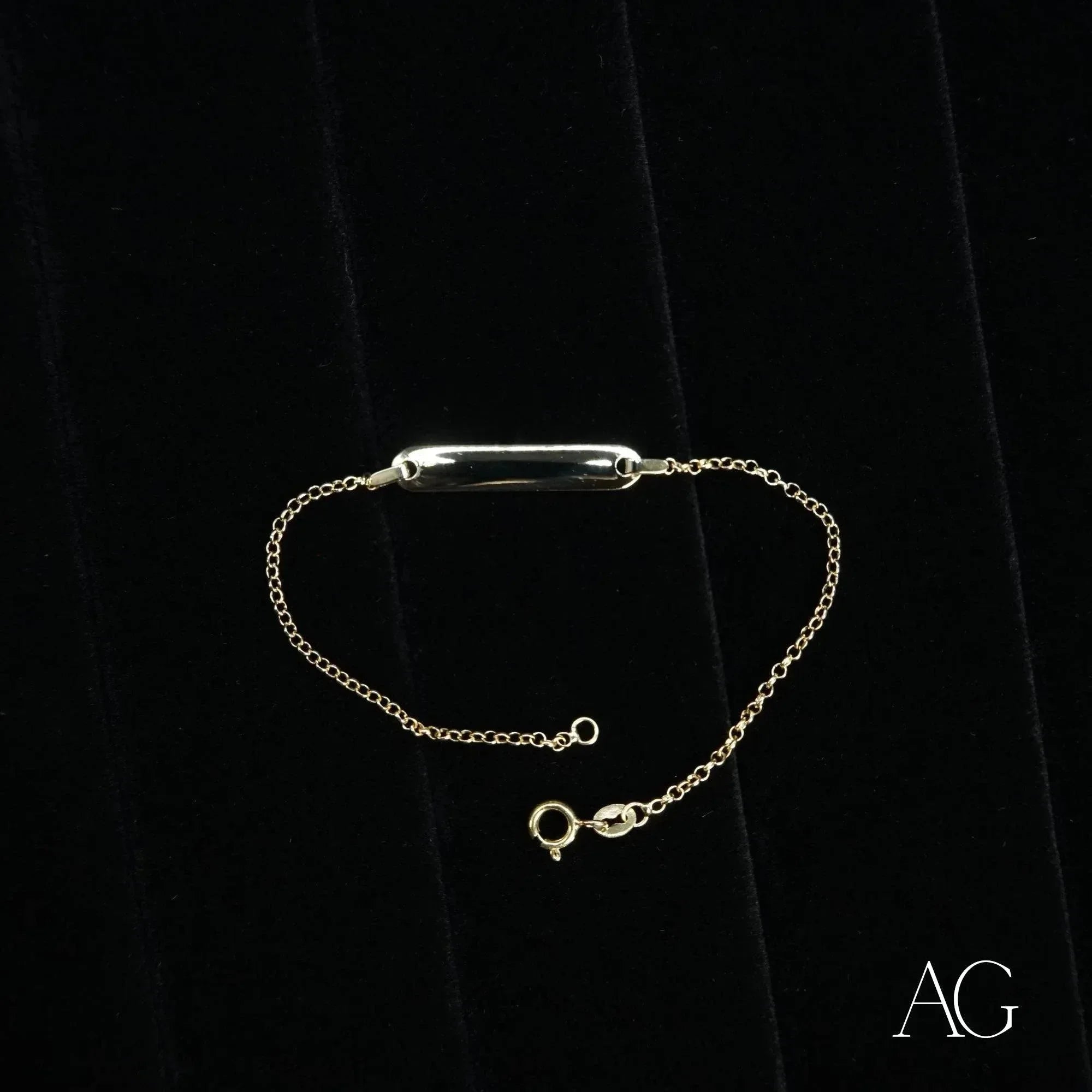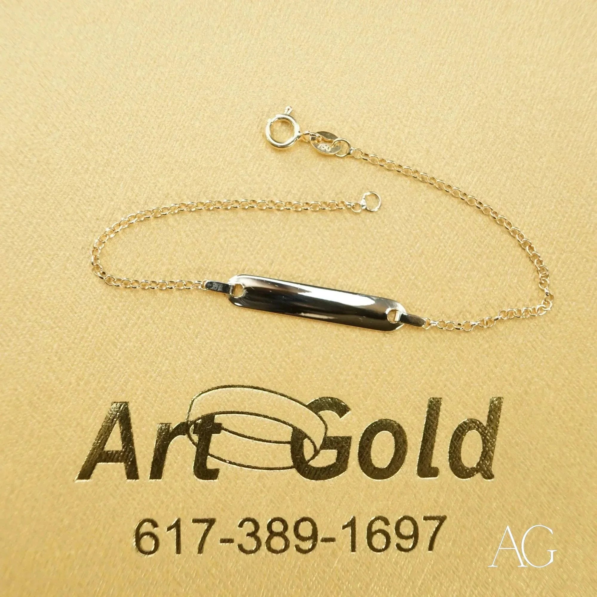 Personalized ID Tag: Elevate this elegant gold ID bracelet with custom engraving. Choose from a variety of fonts and symbols to create a truly one-of-a-kind piece, perfect for everyday wear or to mark a special occasion. This personalized ID tag adds a layer of safety and security, providing peace of mind for parents.Lightweight Design: The feather-light, 1-gram design ensures carefree comfort. Your child will hardly notice they're wearing it, allowing them to play, explore, and dream without restriction.Secure Fit: Crafted specifically for delicate wrists, this bracelet features a secure clasp and a design that stays comfortably in place, minimizing the risk of snags and ensuring worry-free wear for even the most energetic youngsters.