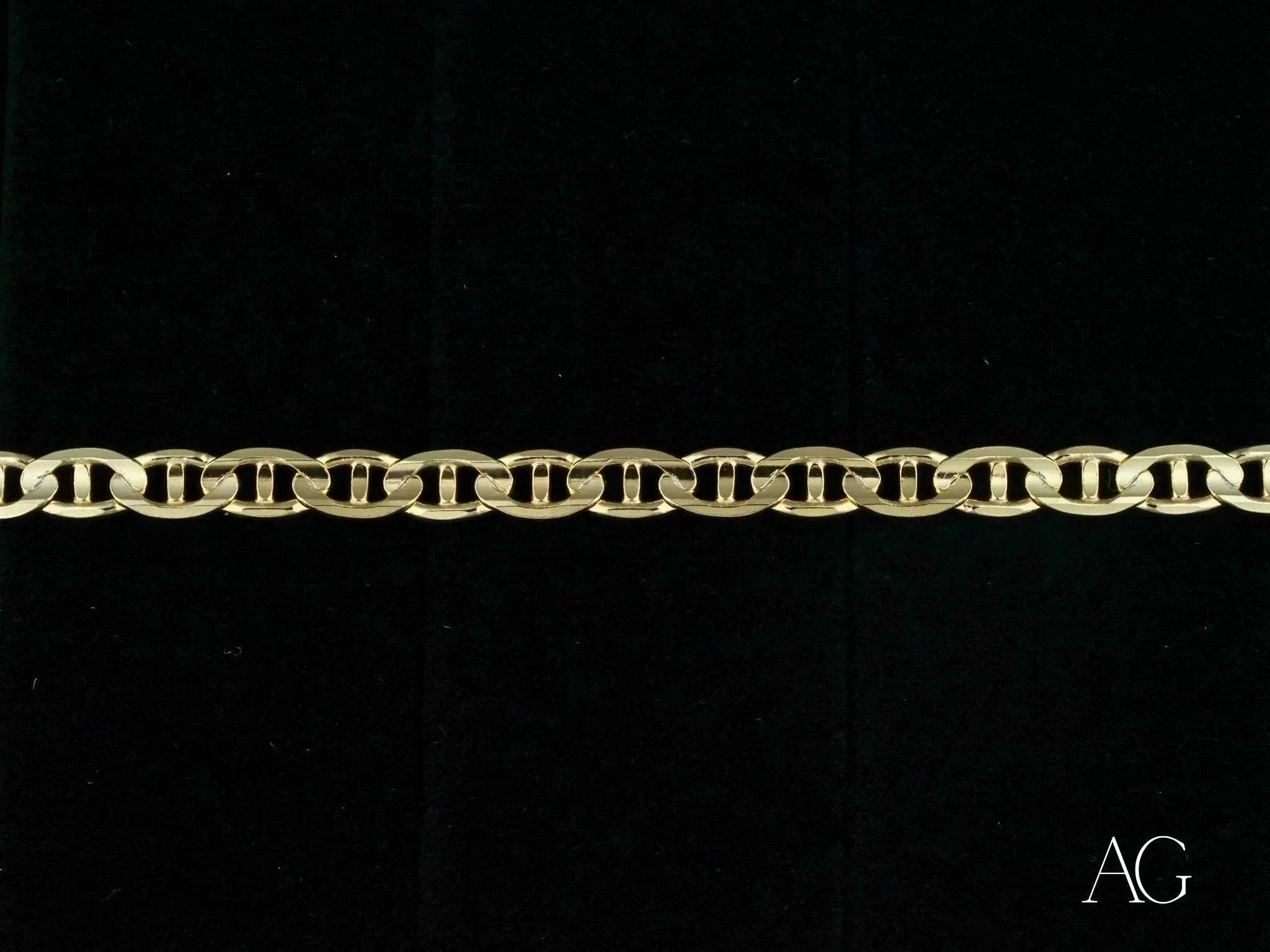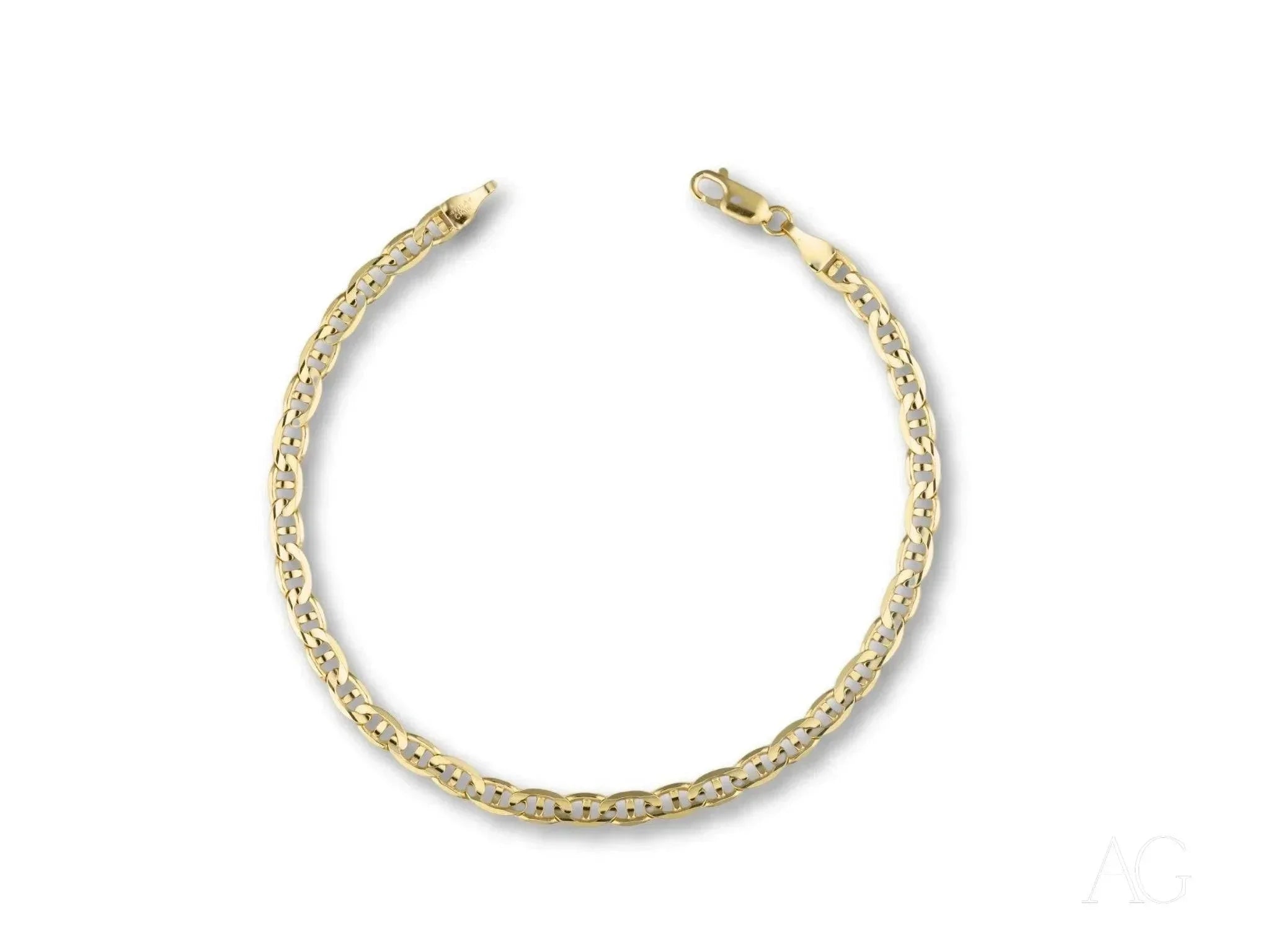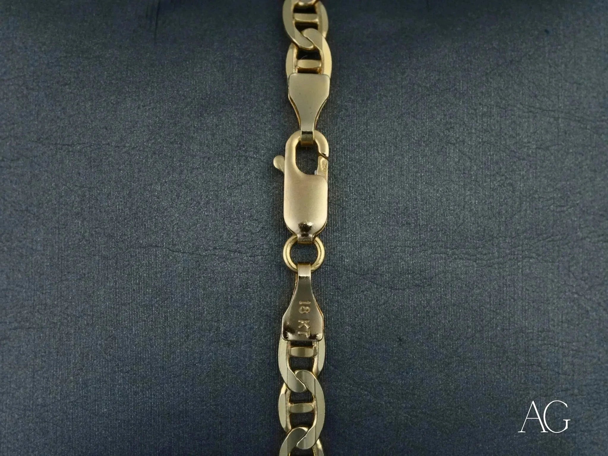 Prepare to be captivated by the sheer elegance of our 18k solid gold bracelet. The sophisticated navy link pattern dances with light, exuding an aura of timeless luxury and refined taste. This exquisite piece, handcrafted with meticulous attention to detail, is more than just jewelry; it's a statement of enduring style, perfect for those who appreciate the artistry of fine craftsmanship and the allure of classic design. This Art Gold Jewelry creation is a versatile treasure, destined to become a cherished centerpiece of any jewelry collection.