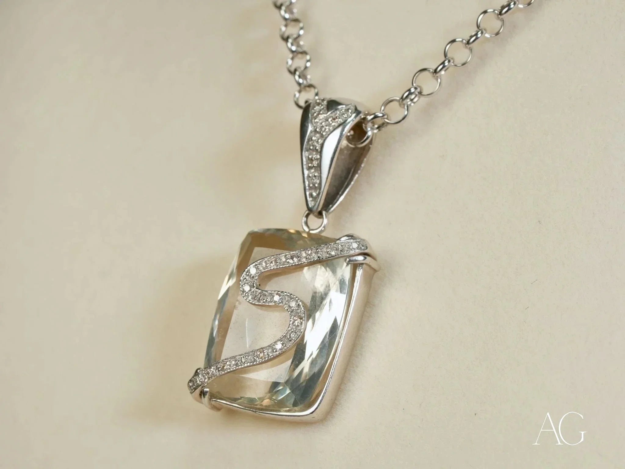 • 1x Eternal Frost: 18k White Gold Crystal & Diamond Pendant