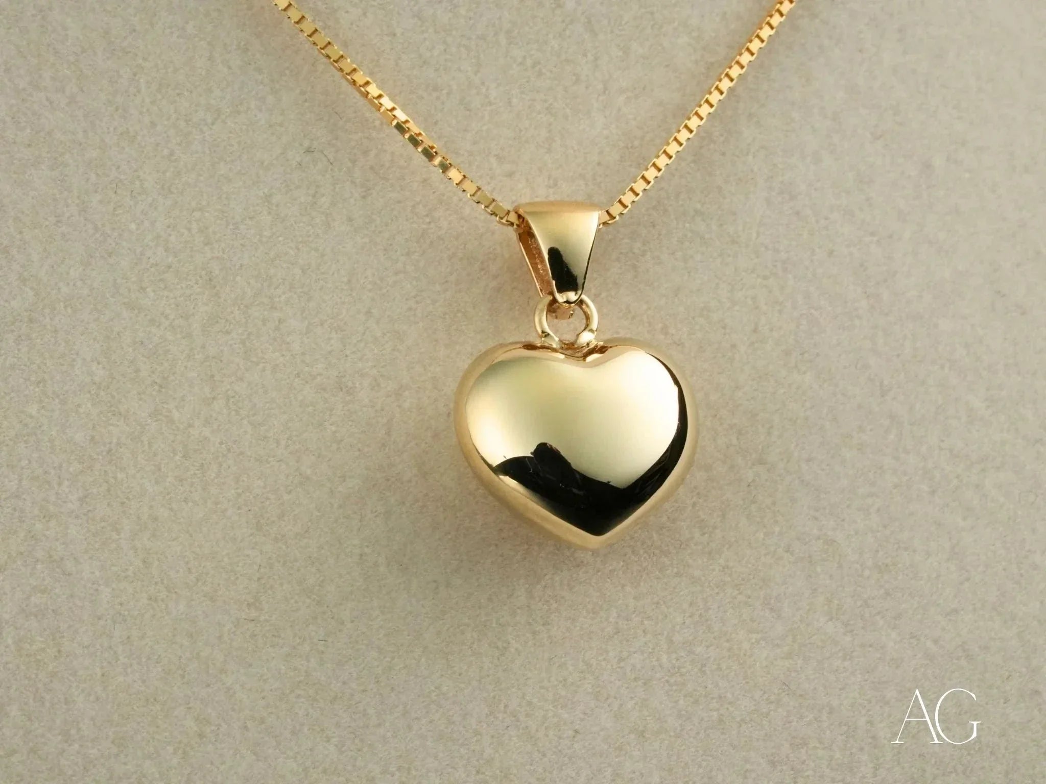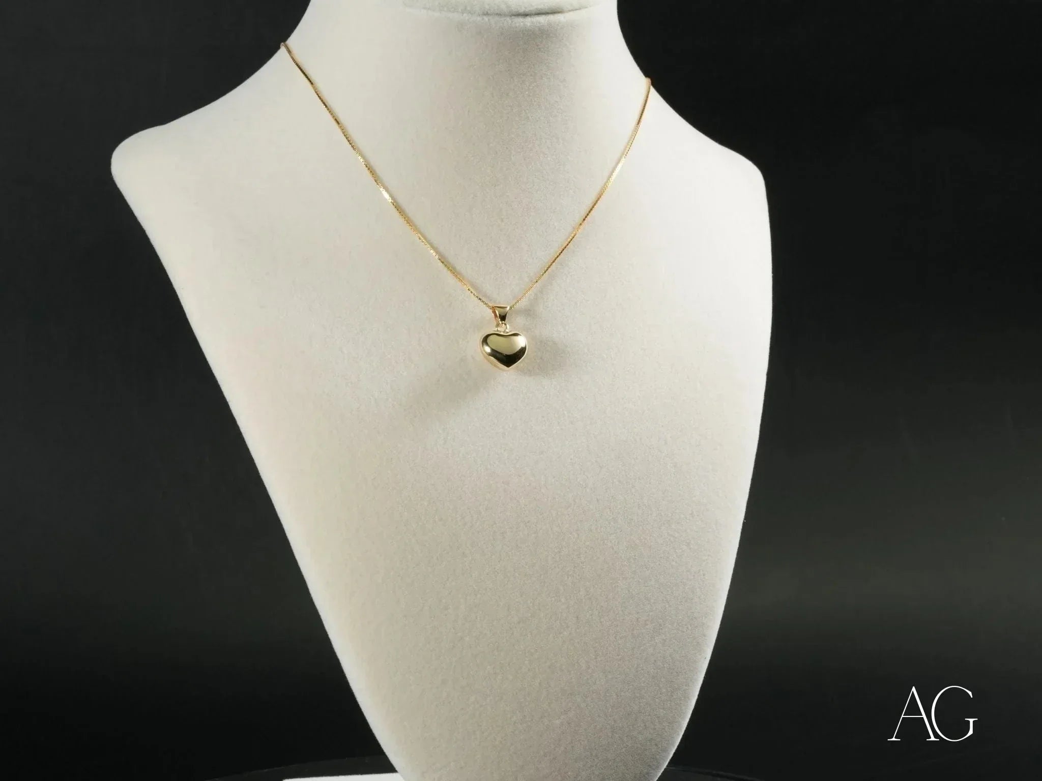 Premium 18k Gold Craftsmanship: Revel in the luxurious warmth and enduring brilliance of solid 18k gold, promising a lifetime of radiant beauty and unwavering quality. This golden heart pendant is more than just jewelry; it's an investment in timeless elegance.Classic Heart Design: The universally recognized symbol of love, compassion, and connection, this beautifully sculpted heart captures the essence of heartfelt emotion. Its graceful curves and polished finish create a captivating dance of light, reflecting the depth of feeling it represents.Lightweight Elegance: At just 1.2 grams, the Golden Heart Pendant drapes comfortably against your skin, allowing you to wear your heart on your sleeve, literally, without compromising on style. Experience all-day comfort without sacrificing an ounce of elegance.Versatile Styling: Elevate any ensemble, from casual everyday looks to sophisticated evening attire. This golden heart pendant adds a touch of refined grace, effortlessly complementing your personal style and making a subtle yet unforgettable statement.Symbolic Meaning: More than just a beautiful adornment, the Golden Heart Pendant is a tangible expression of love, affection, and cherished memories. Gift it to a loved one to commemorate a special milestone, or wear it as a personal reminder of the enduring power of love.
