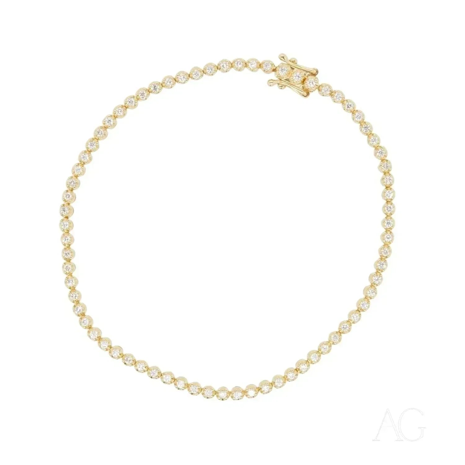 The Brilliance of 0.9ct Diamonds Set in 18k Gold Each of the meticulously hand-selected diamonds in this 18k Gold Bracelet boasts exceptional clarity, cut, and fire, totaling a dazzling 0.9ct. The interplay of light and brilliance is simply mesmerizing. The luxurious 18k gold setting not only enhances the diamonds' sparkle but also provides enduring durability and a rich, warm luster. From a glamorous evening gala to a sophisticated business luncheon, this versatile 18k gold bracelet from Art Gold Jewelry effortlessly elevates any ensemble.
