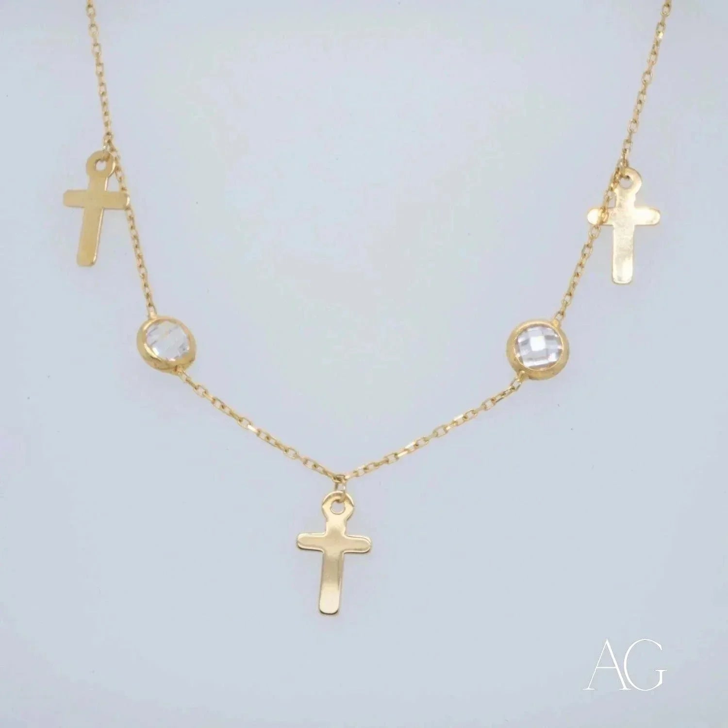 Art Gold Jewelry: Where Exclusivity Meets Artistry At Art Gold Jewelry, we don't just craft jewelry; we curate experiences. Specializing in crafting exquisite gold jewelry, expert jewelry repair, and purveyors of rare stones and diamonds, we offer pieces as unique as the individuals who wear them. This 18k Charms Anklet with 5 crosses epitomizes our dedication to blending artistic creativity with luxurious materials. The result? Jewelry that is not only exclusive and elegant but also deeply meaningful, a tangible expression of your individual style and spirit. Discover the Art Gold difference in the Greater Boston Area and experience the transformative power of jewelry that speaks to your soul. Let this 18k charms anklet be a testament to your faith and a reflection of your discerning taste.