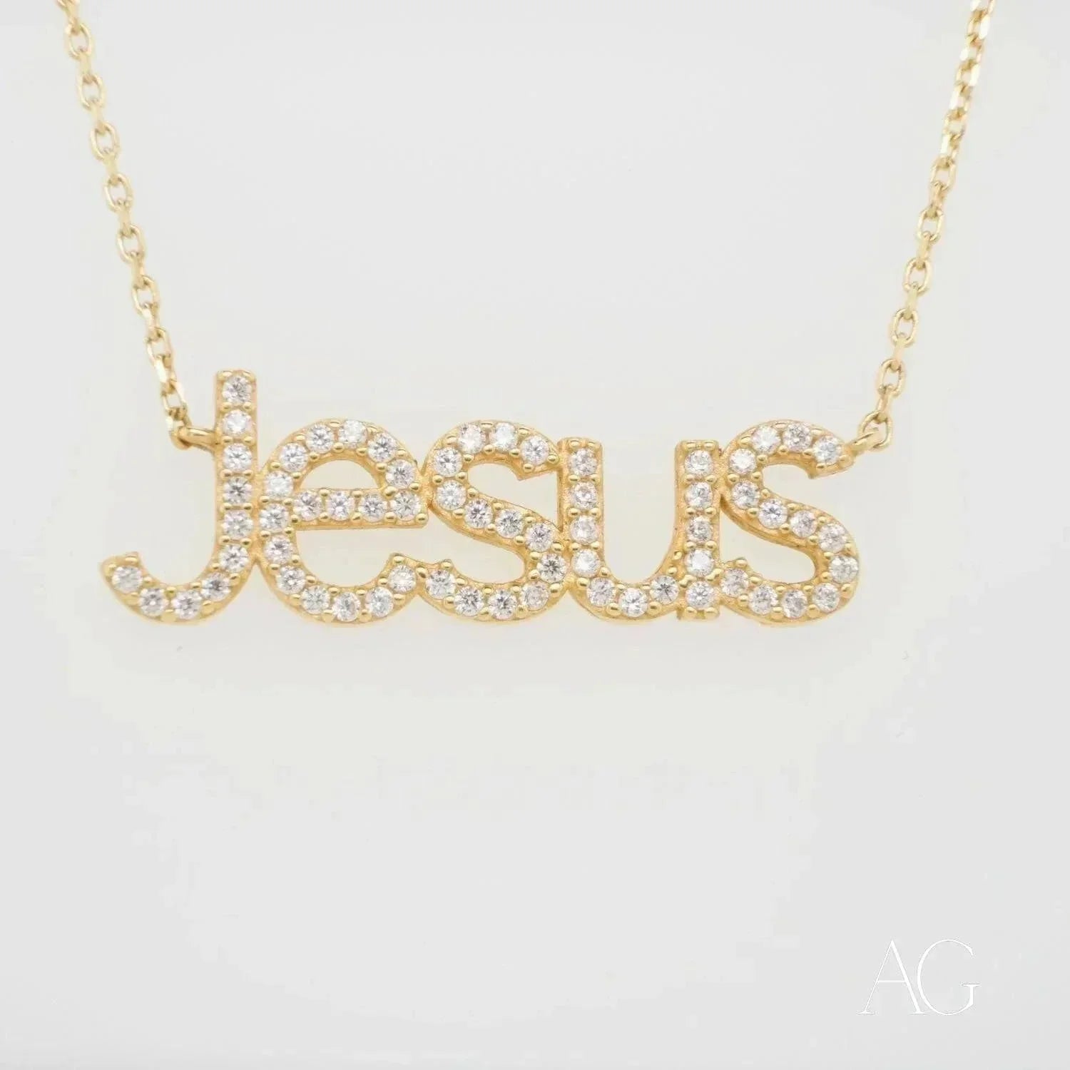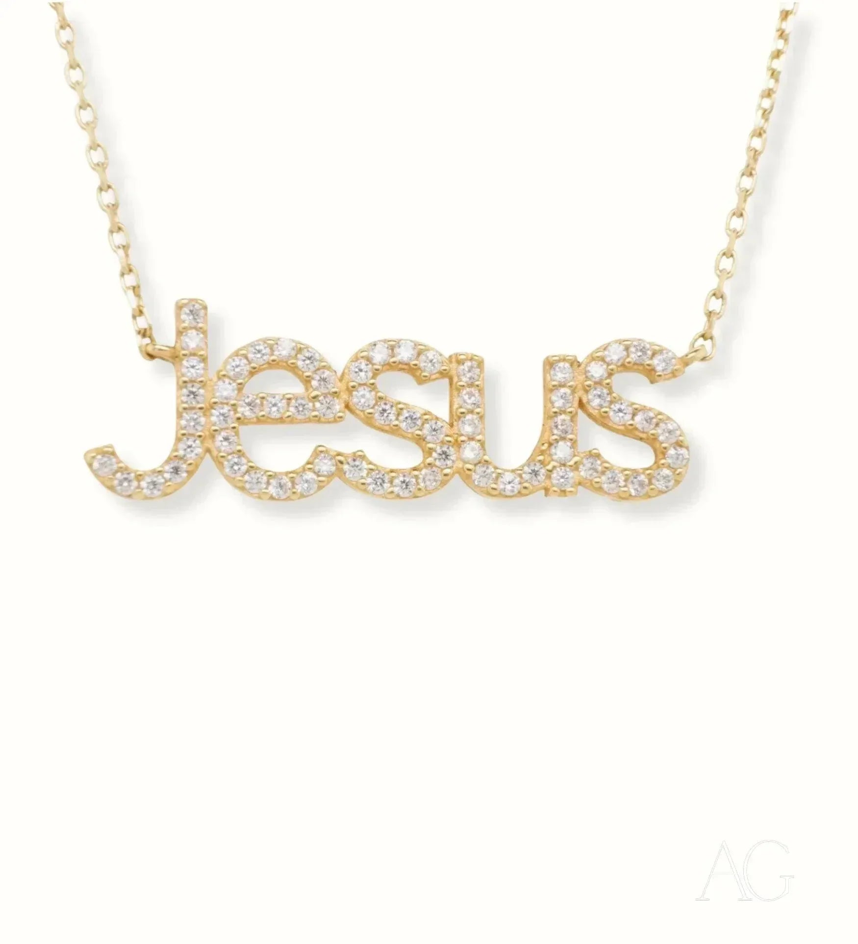 The Radiance of Zirconia on a Sacred Emblem Our 18k Gold Necklace features a breathtakingly detailed Jesus pendant. Each line and curve of this sacred emblem is brought to life with the radiant brilliance of hand-selected zirconia stones. These premium stones, chosen for their exceptional clarity and fire, shimmer against the rich backdrop of 18k gold, illuminating the pendant with a captivating, almost divine light. This exquisite interplay of gold and zirconia creates a stunning visual testament to your faith, making this Jesus pendant a radiant beacon of hope, devotion, and enduring love. Experience the joy of wearing a piece that speaks volumes without uttering a word.