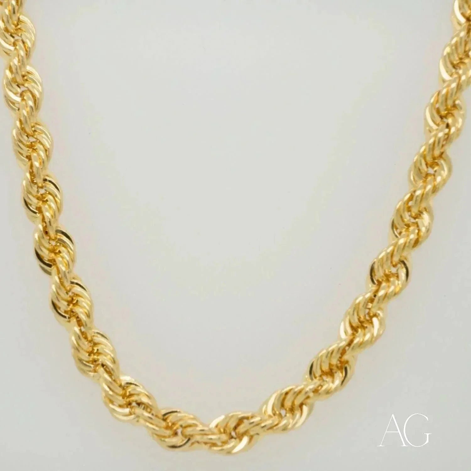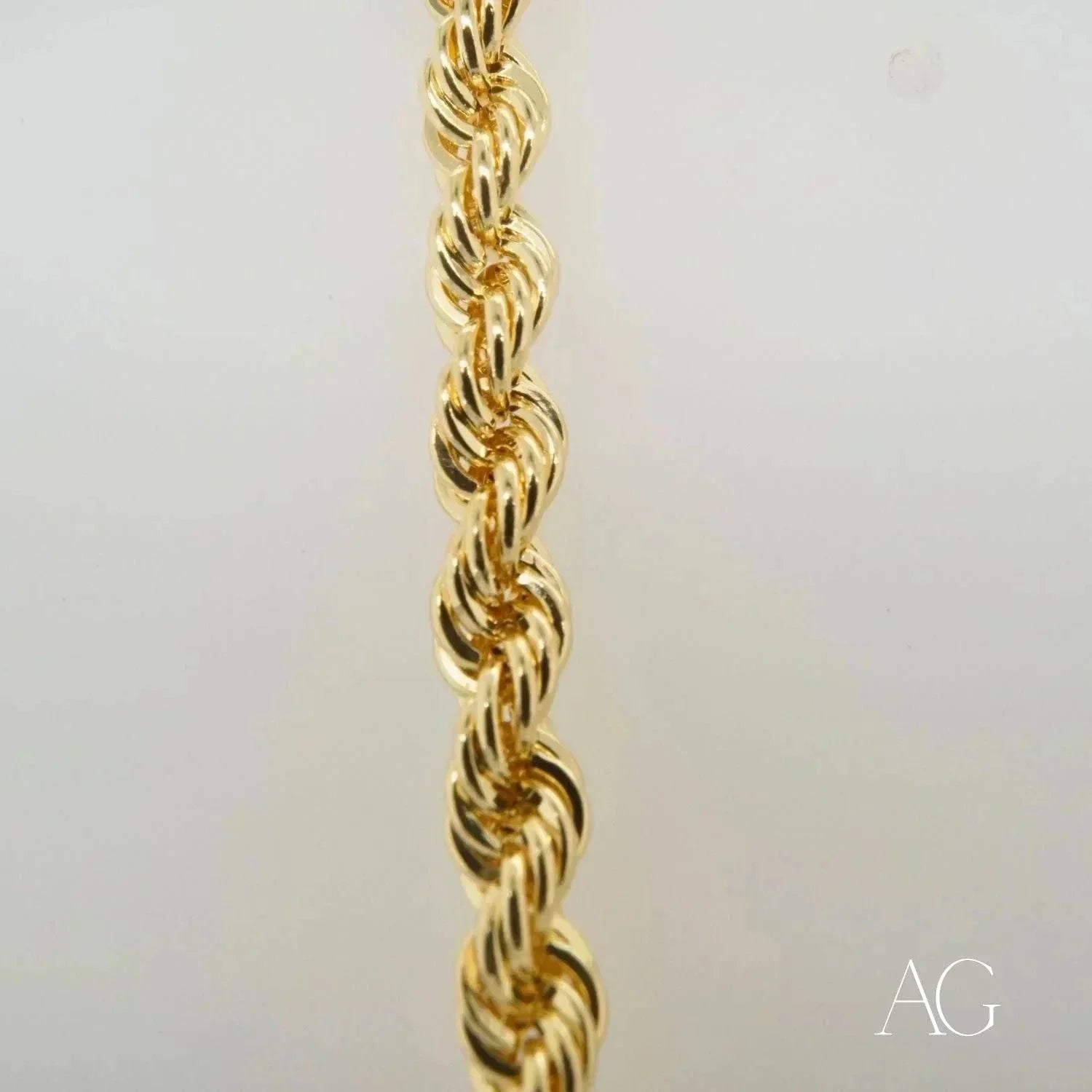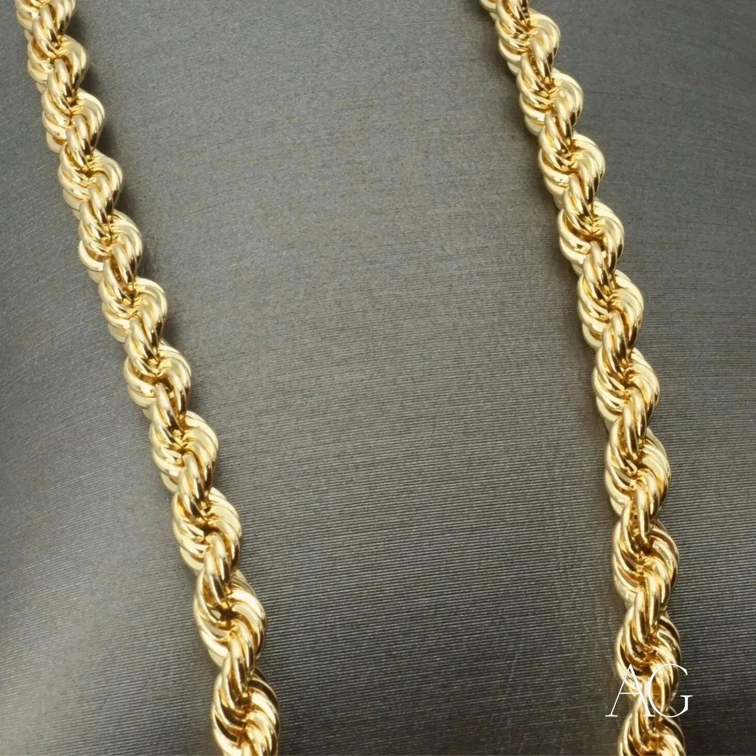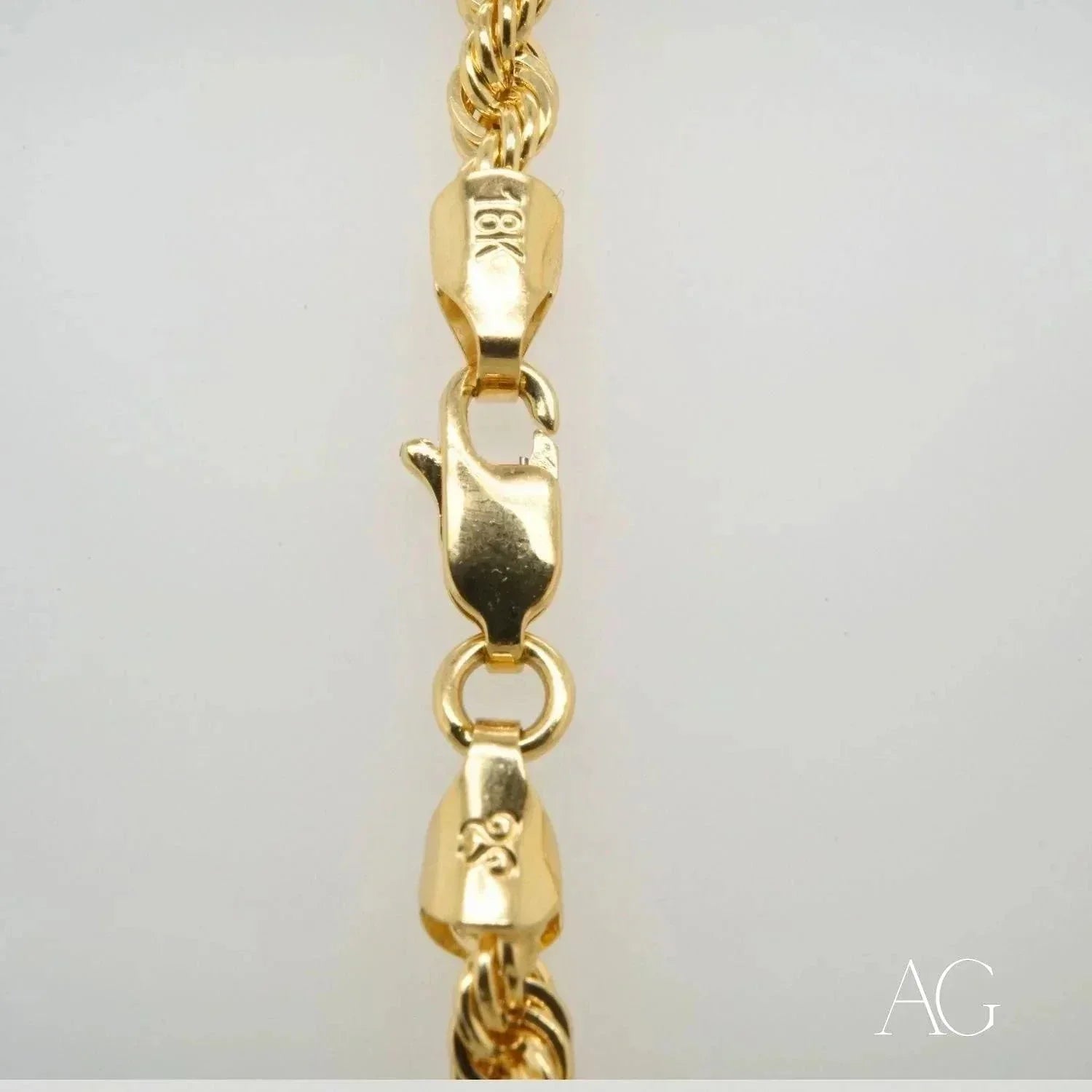 Prepare to be captivated by our 18k Rope Chain, a breathtaking embodiment of craftsmanship and timeless elegance. More than just jewelry, this 8.62-gram masterpiece is an art gold jewelry statement, radiating sophistication and style. Forged from the finest 18k gold, its classic design resonates with those who appreciate true luxury. The intricate rope pattern, renowned for its durability and captivating allure, makes this 18k rope chain a versatile treasure, effortlessly elevating both formal and casual ensembles.