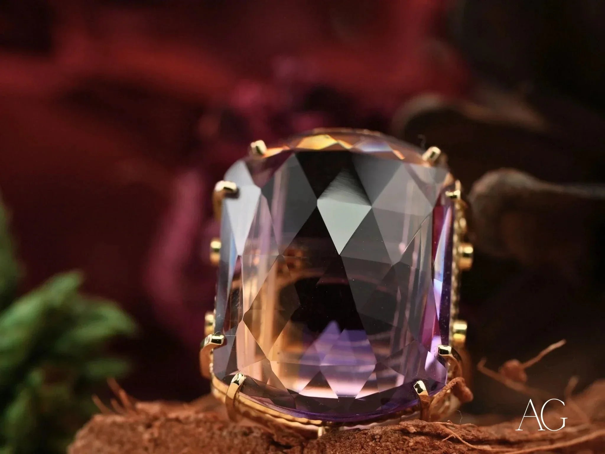 • Central Gemstone: A natural amethyst, meticulously selected for its deep, vibrant purple color and exceptional clarity. Its captivating facets dance with light, creating a mesmerizing display.
