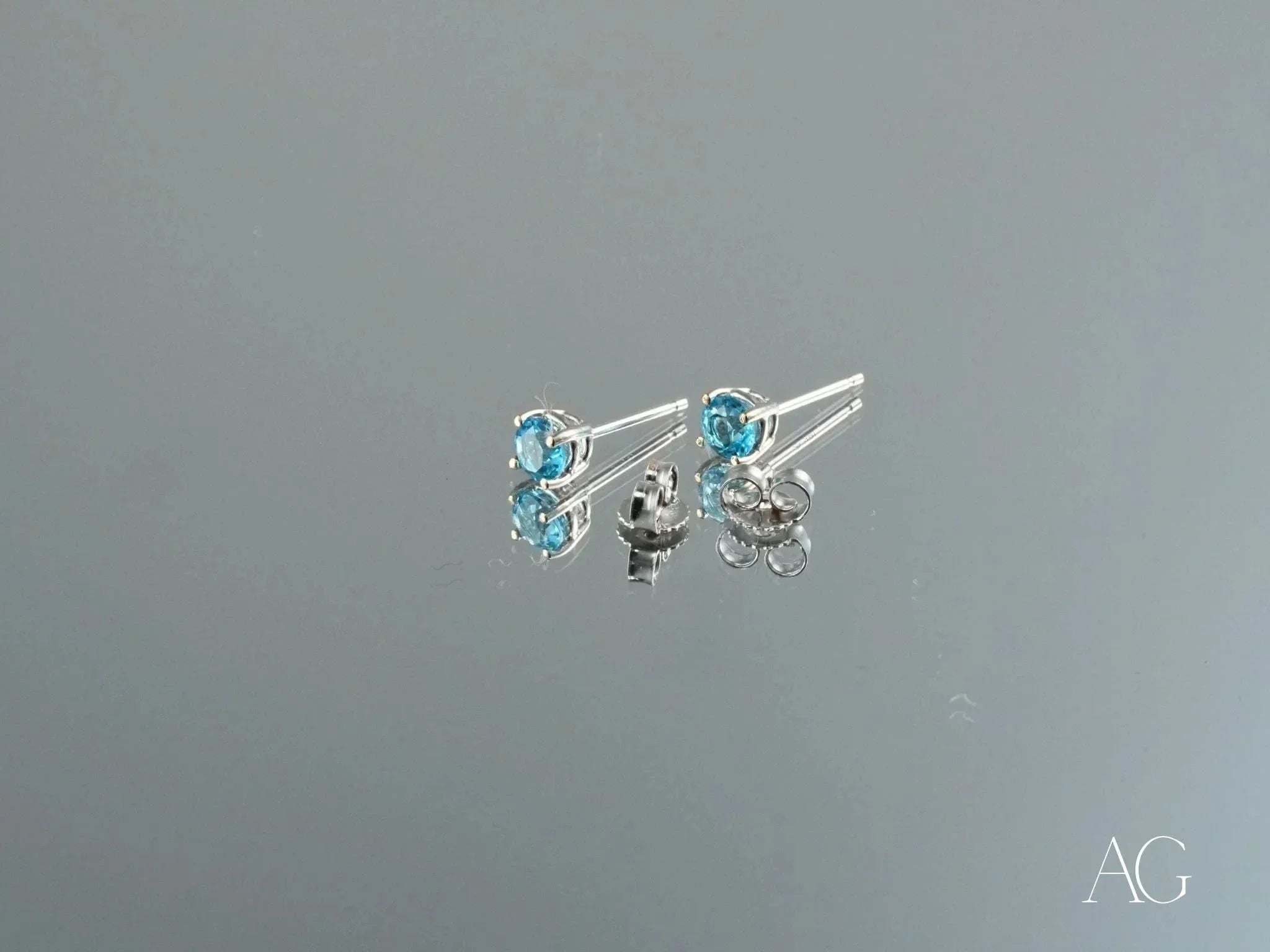 Azure Glow: 18k White Gold Blue Topaz Stud Earrings