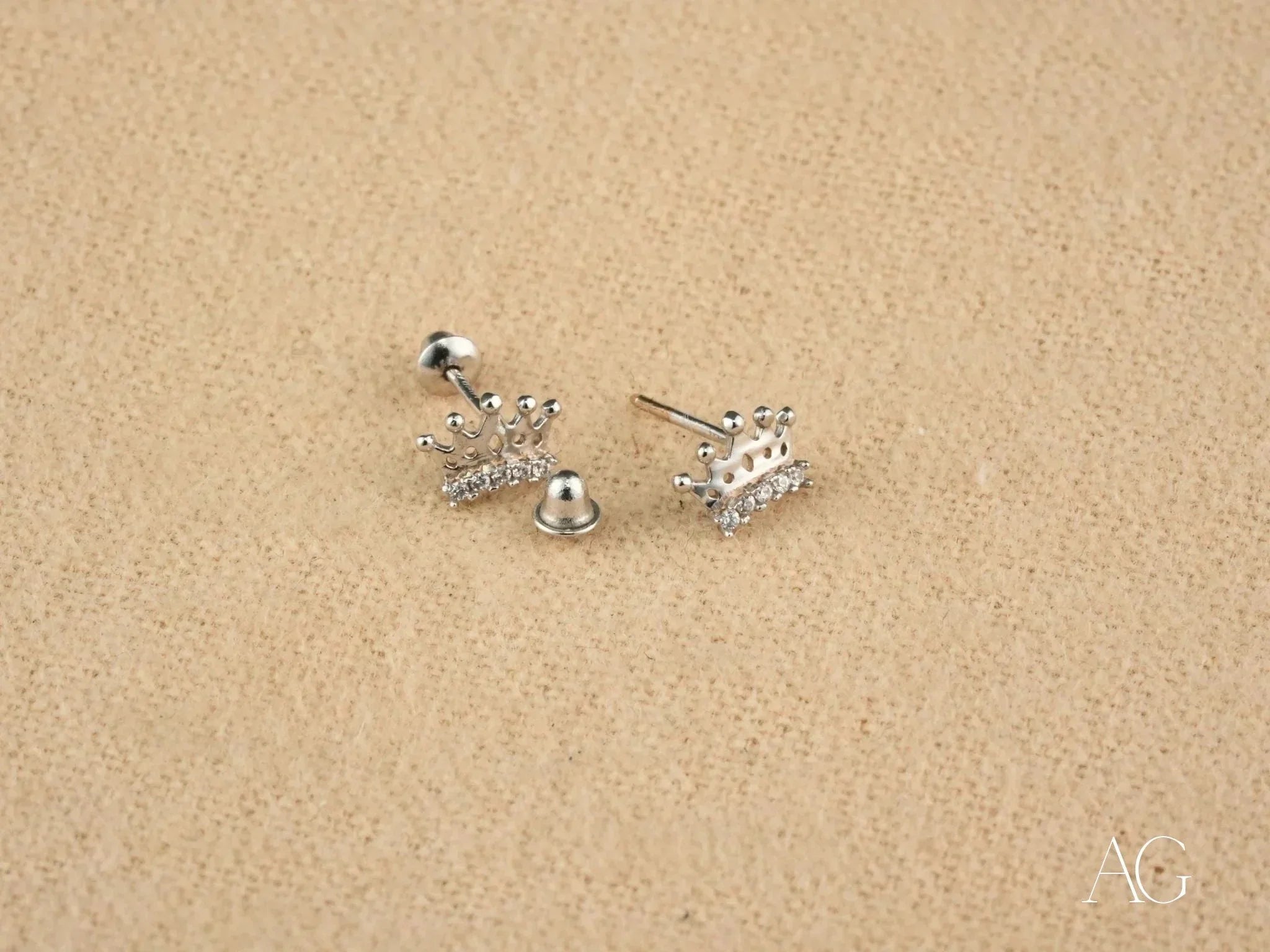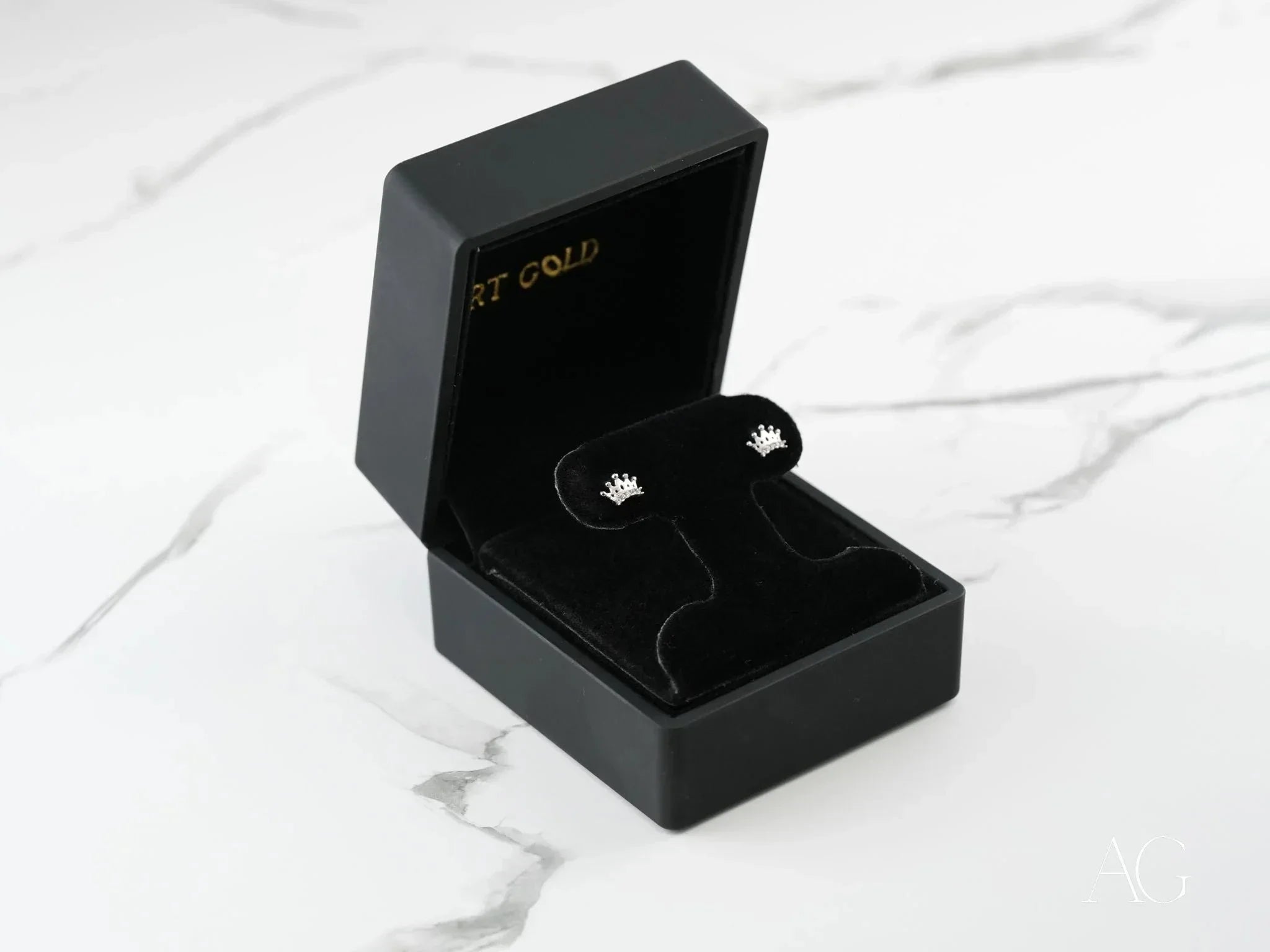 • 18K White Gold Brilliance – Crafted from luxurious 18K white gold, these earrings possess a timeless shine that resists tarnish and whispers of enduring quality. The radiant white gold beautifully complements the intricate crown design, creating a piece you'll treasure forever.