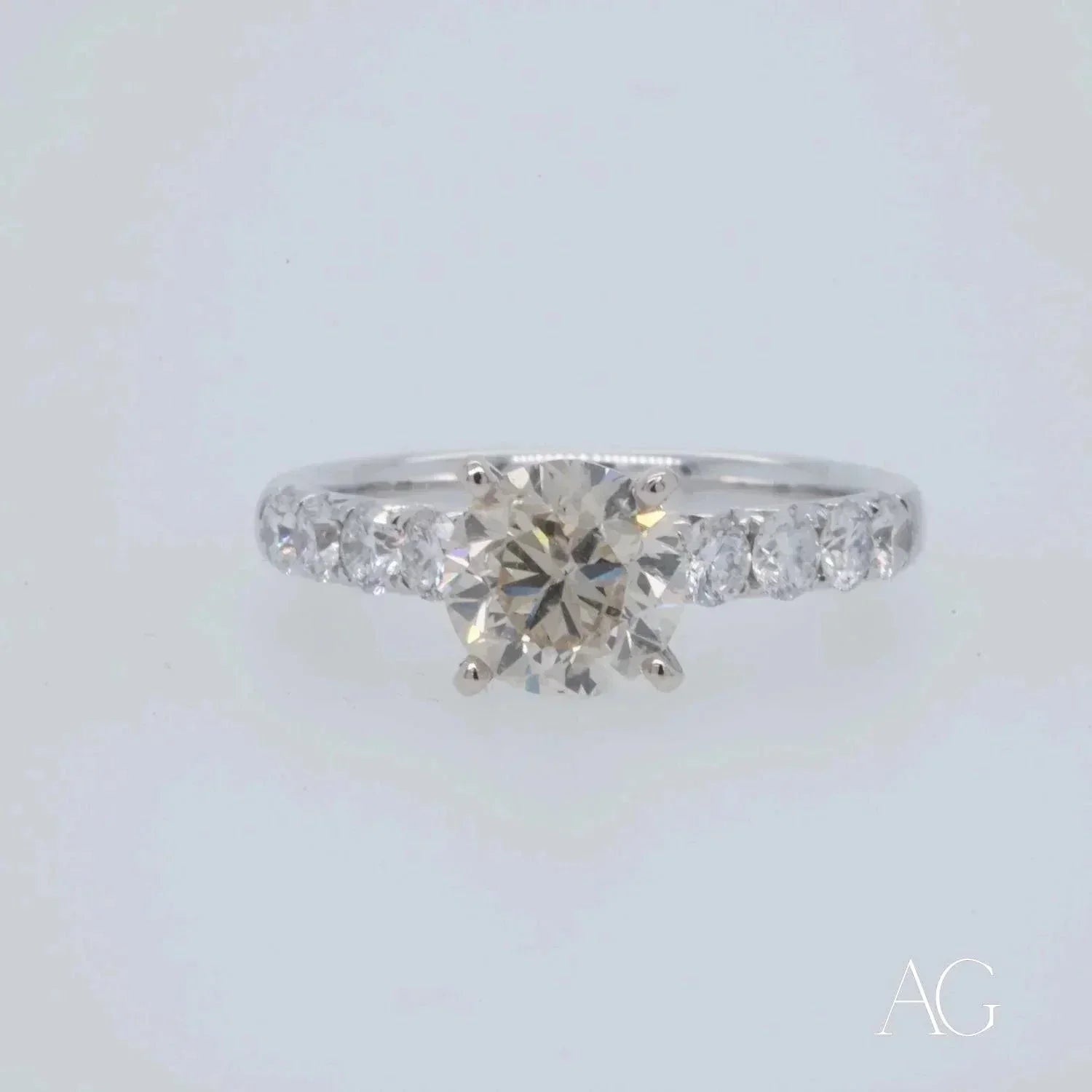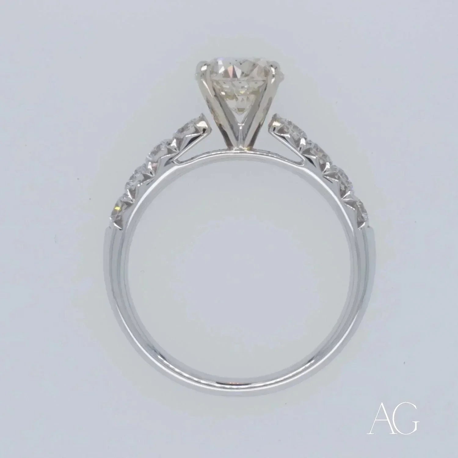 The Brilliance of a 1.35ct Diamond At the heart of this exquisite engagement ring beats a mesmerizing 1.35ct diamond, meticulously hand-selected for its exceptional clarity, precision cut, and breathtaking brilliance. The diamond's captivating fire is amplified by the sleek and sophisticated embrace of 18k white gold, a perfect harmony of light and luxury. This 1.35ct diamond isn't merely a gemstone; it's a beacon of your love, destined to shine brightly through a lifetime of shared moments. The exceptional quality of this diamond ensures its enduring brilliance, a constant reminder of the enduring power of your love.