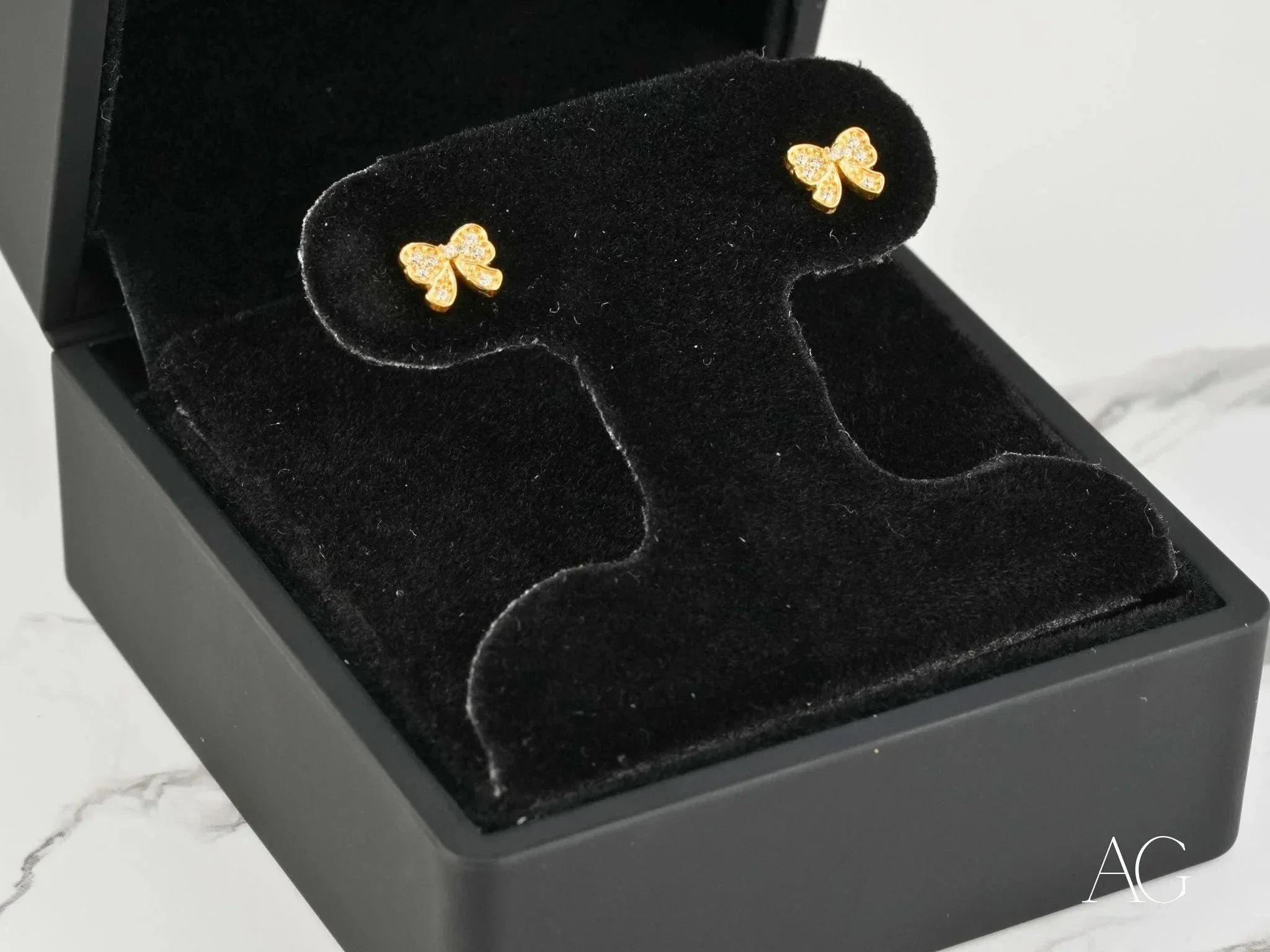 18K Gold Earrings – 18K Gold CZ Bow Earrings