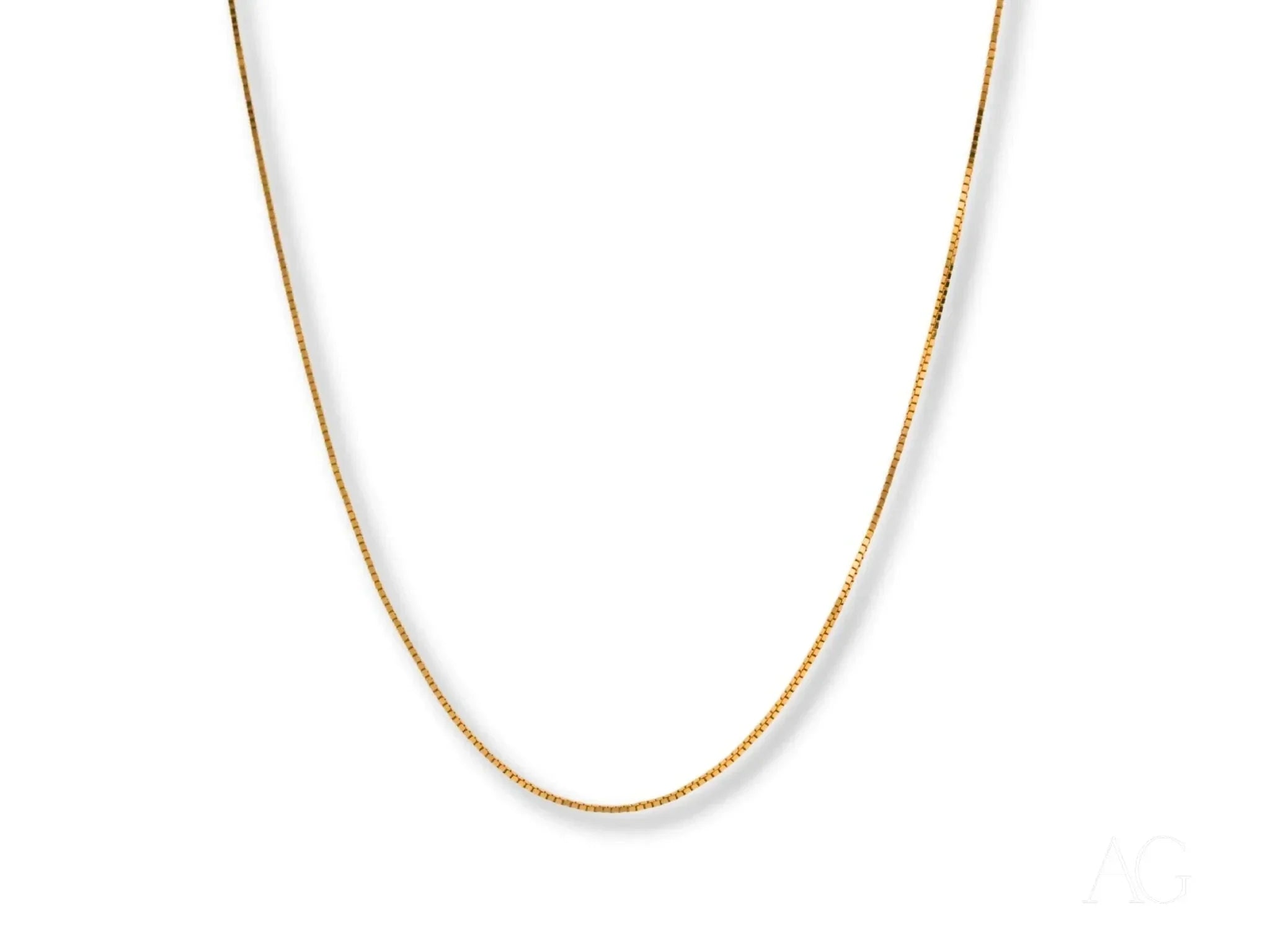 The Gold Box Chain is a popular choice among jewelry lovers because of its stylish design and versatility. Made from high-quality 18k gold, it shines beautifully and complements any outfit. Whether you’re dressing up for a special occasion or looking for an everyday accessory, the Gold Box Chain effortlessly elevates your style. Its durable construction ensures that this piece will last, making it a worthwhile investment for your jewelry collection.