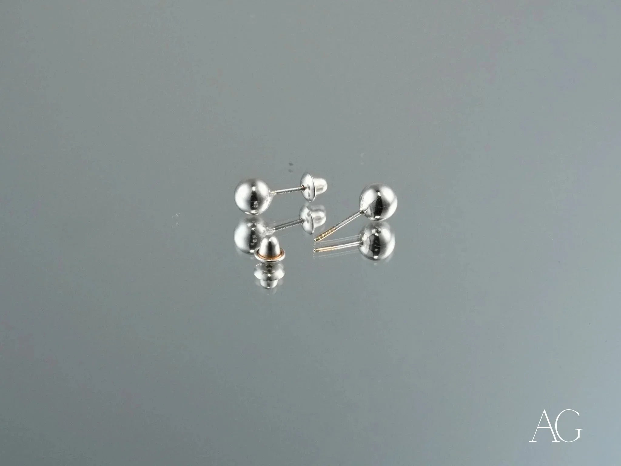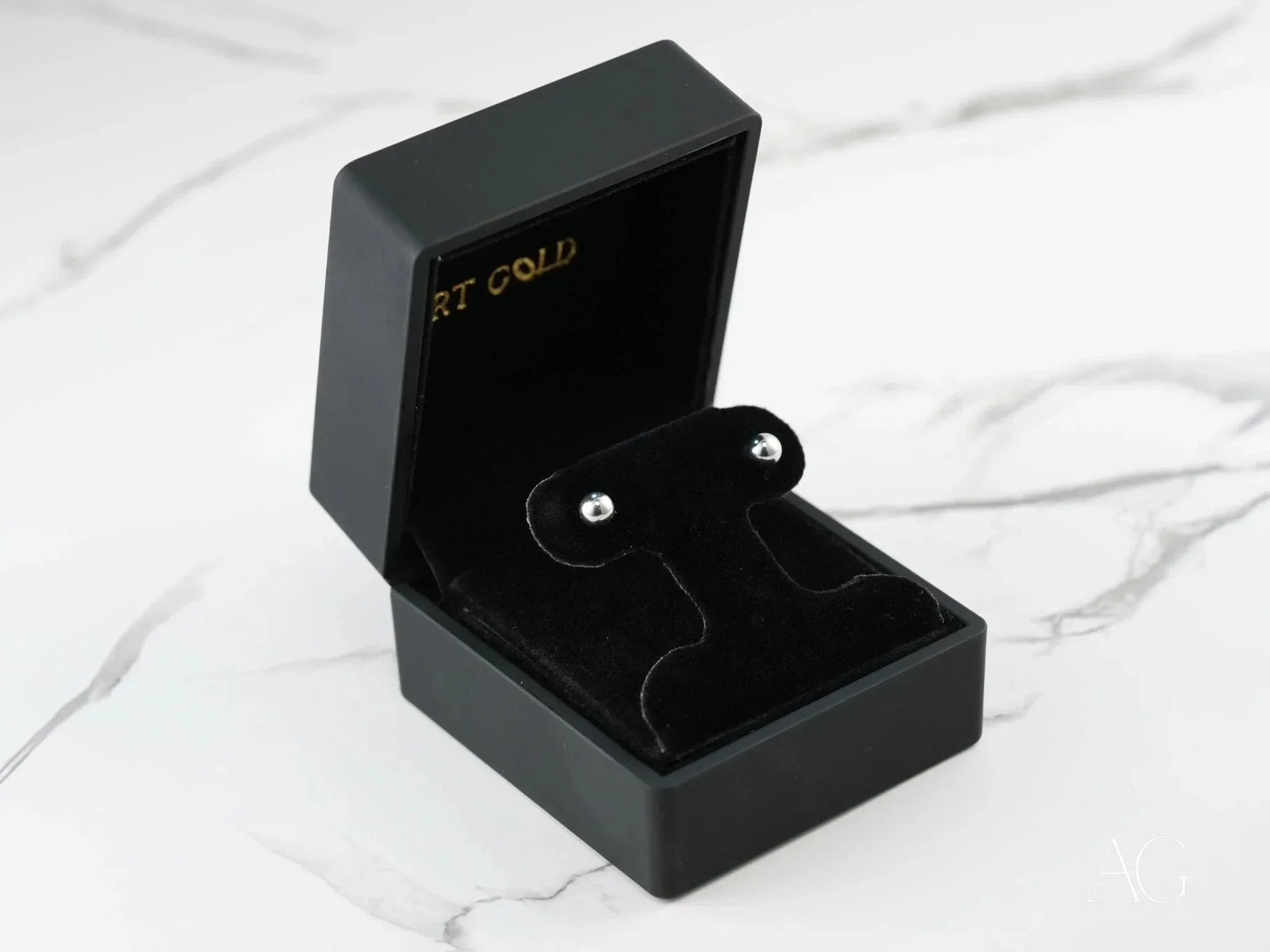 • 1 Pair of Certified 18K Solid White Gold Ball Earrings (5mm)