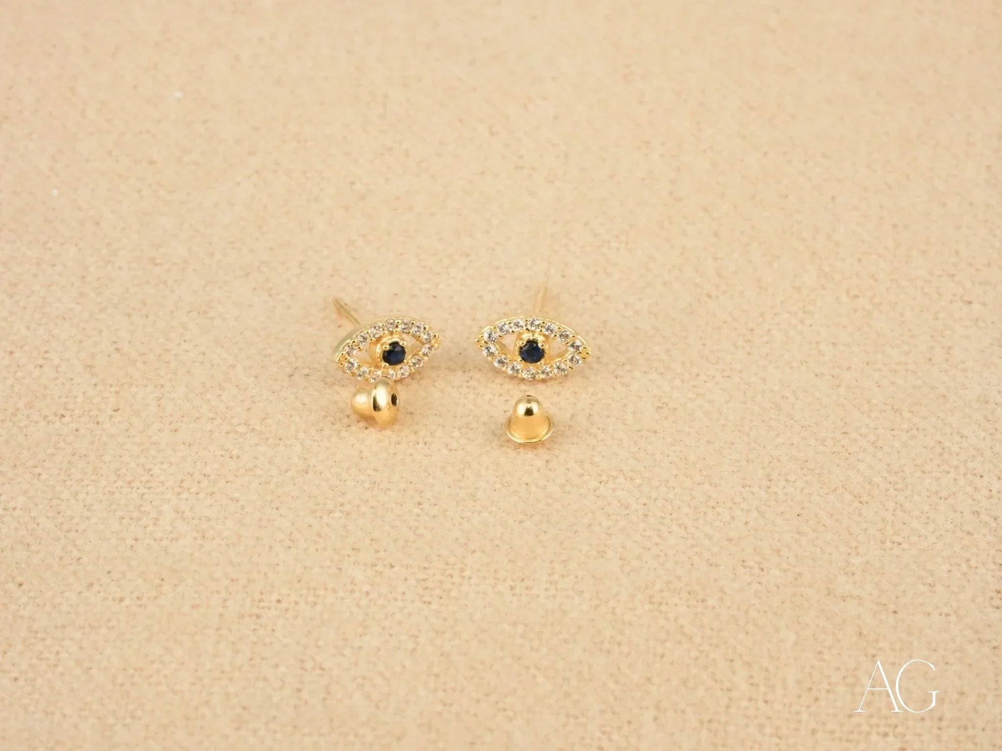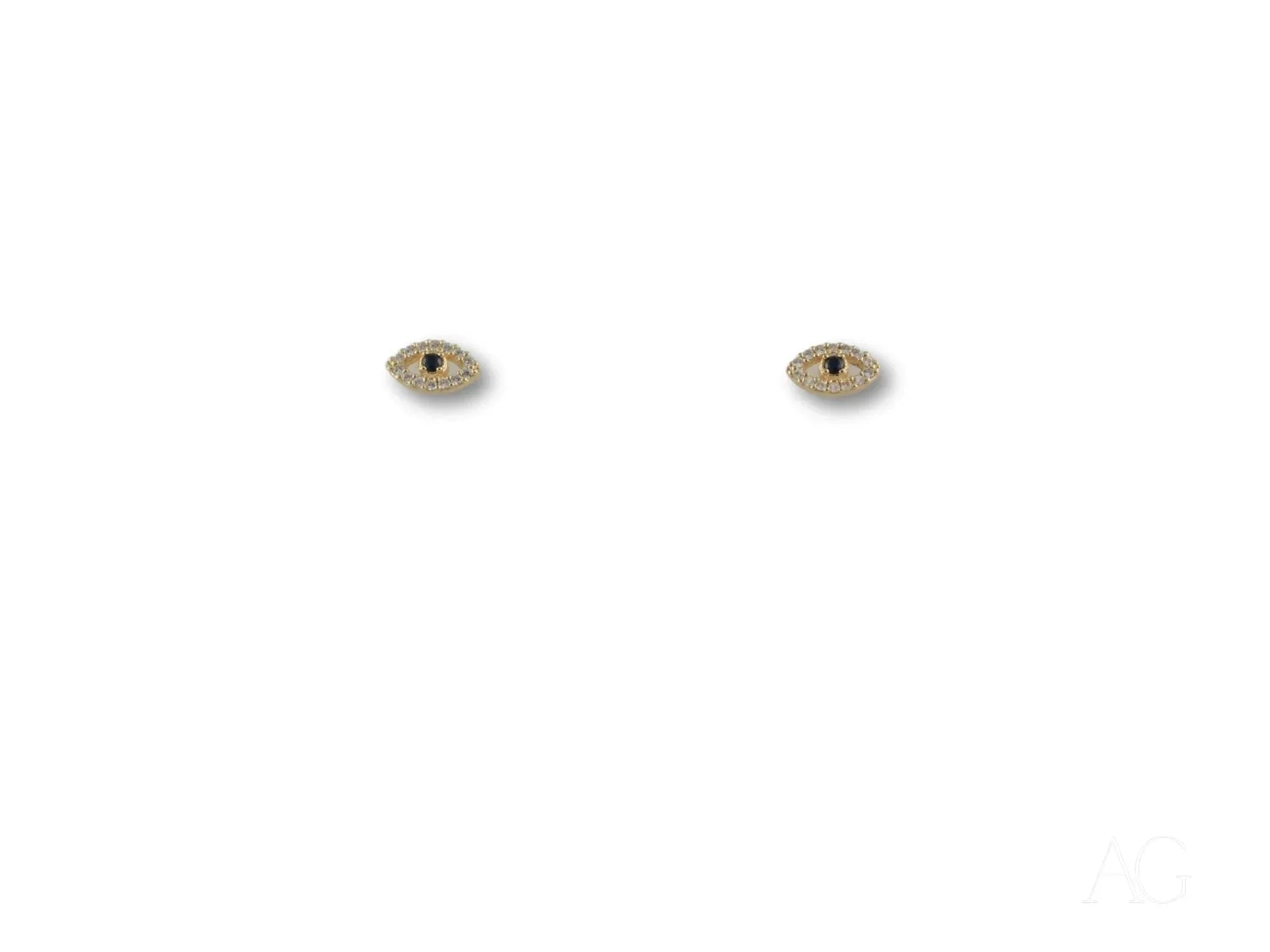 ✔ 1 Pair of 18K Gold Evil Eye CZ Earrings from Art Gold Jewelry