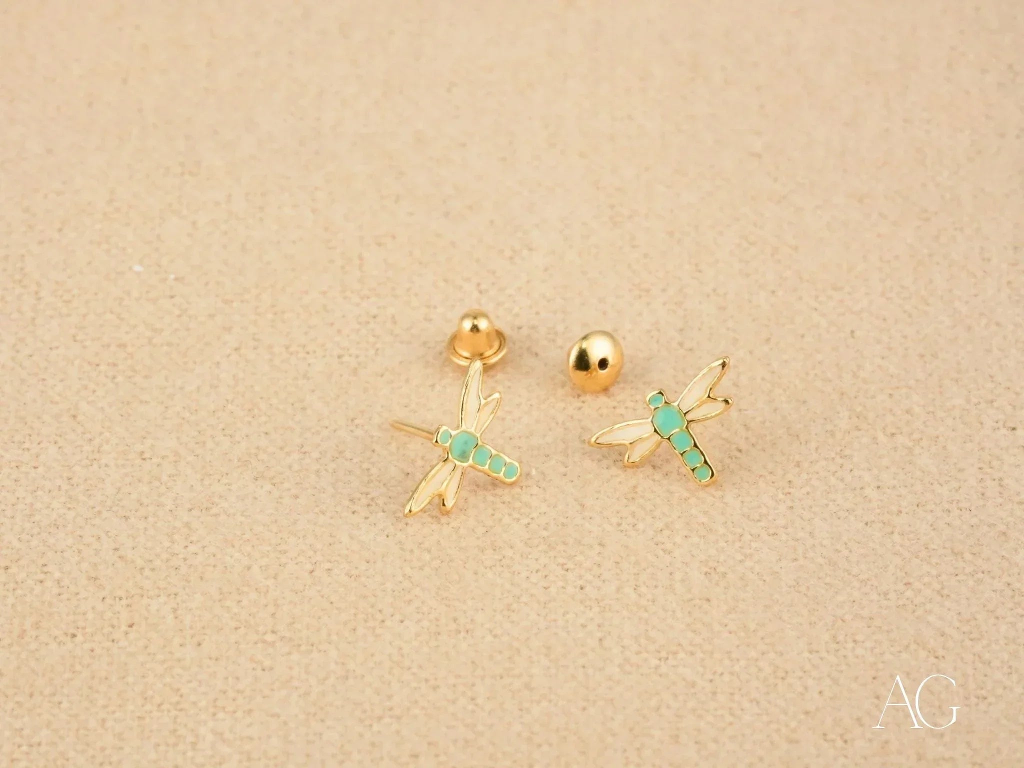 Unleash your inner radiance with these exquisite 18K Gold Dragonfly Earrings from Art Gold Jewelry. Featuring a delicate dragonfly design symbolic of transformation and freedom, these whisper-light earrings (a mere 0.4g) are kissed with vibrant turquoise-colored enamel accents, adding a pop of captivating color. Crafted from certified 18K solid gold, these dragonfly earrings offer a luxurious touch to any nature-inspired ensemble, perfect for those who appreciate the allure of fine jewelry and the magic of the natural world.