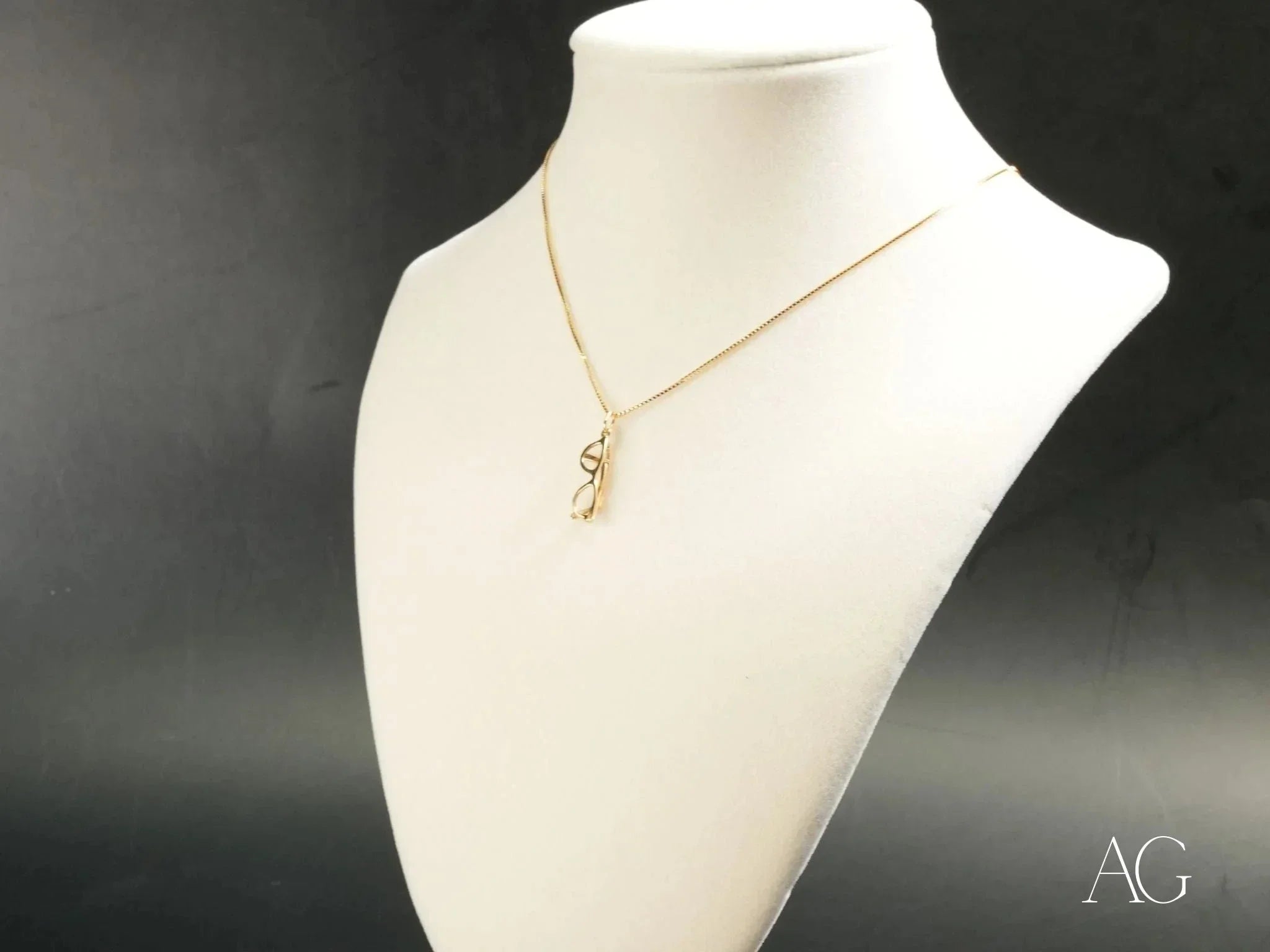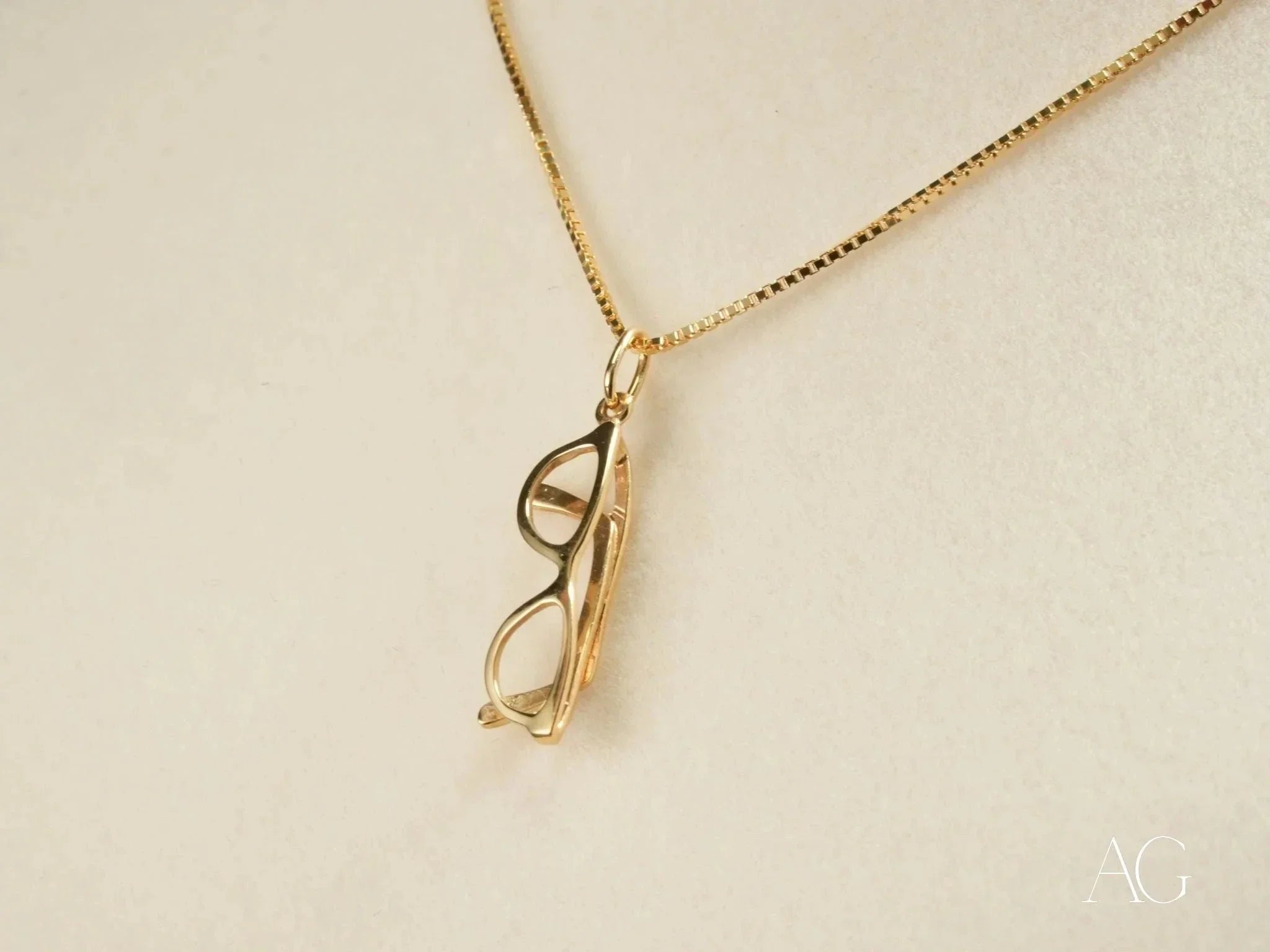 Premium 18k Gold Craftsmanship: Meticulously crafted from solid 18k gold, this glasses pendant exudes a luxurious shine and promises enduring durability, a testament to its superior quality.Iconic Glasses Design: The chic eyeglass shape adds a touch of whimsy and sophistication, symbolizing knowledge, vision, and a keen intellect. This art gold jewelry piece is a conversation starter.Lightweight Elegance: At just 0.9 grams, the Golden Vision Pendant drapes comfortably, allowing for effortless all-day wear. You'll forget you're even wearing it until someone compliments its radiant glow.Versatile Style: From casual everyday looks to elegant evening attire, this golden vision pendant seamlessly transitions, adding a touch of personality to any outfit. Layer it with other necklaces for a truly unique statement.Symbolic Meaning: More than just a beautiful accessory, this glasses pendant represents wisdom, clarity, and a unique sense of style. It's a subtle reminder of your intellectual curiosity and personal journey.