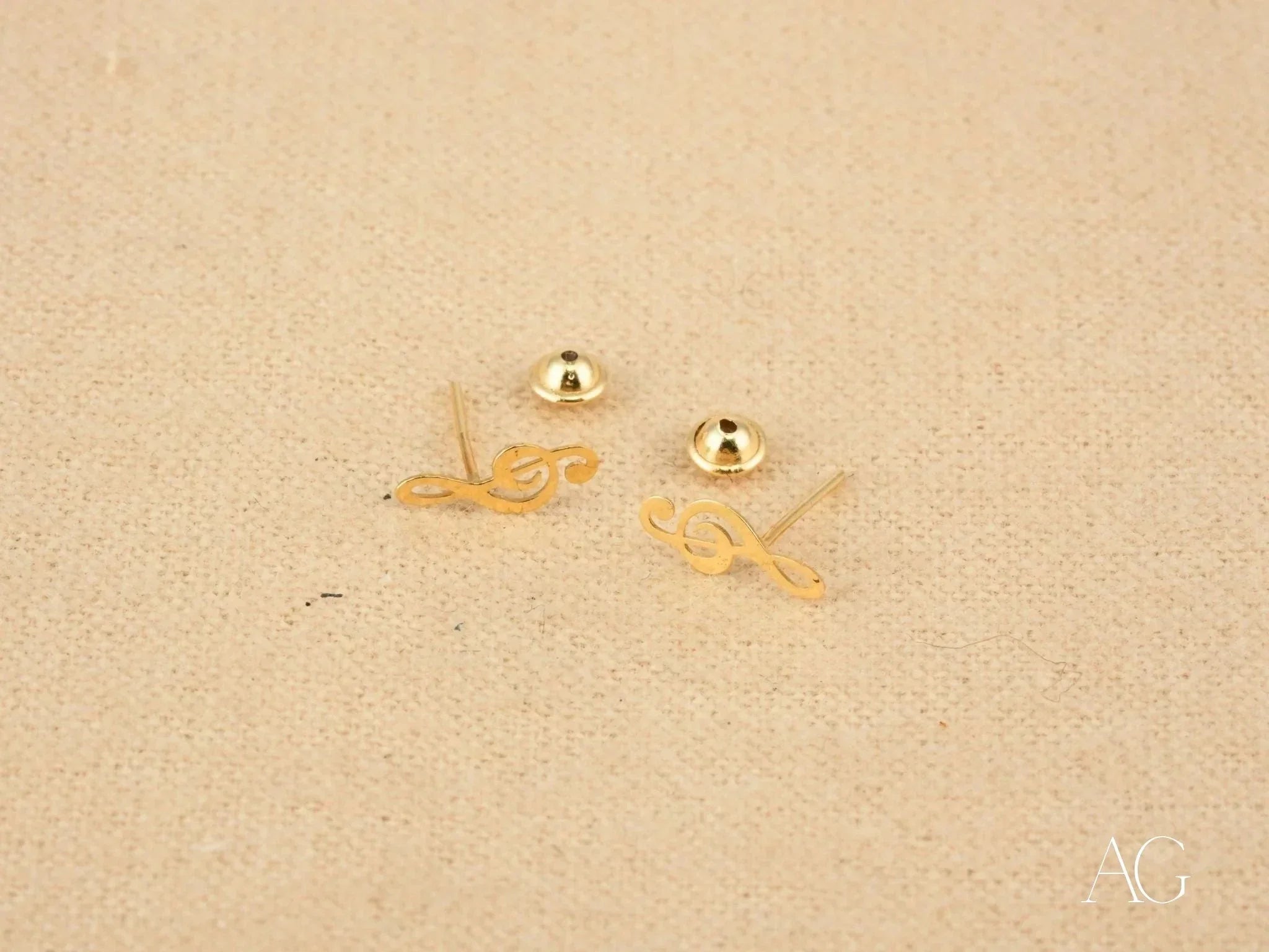 ✔ 1 Pair of 18K Gold Music Note Earrings