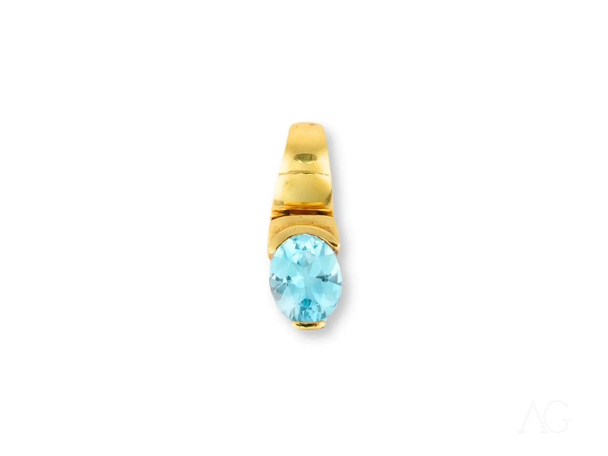 Material: 18k GoldGemstone: Blue TopazWeight: 3.5 gramsDesign: Minimalist pendant featuring a single, captivating blue topaz gemstone