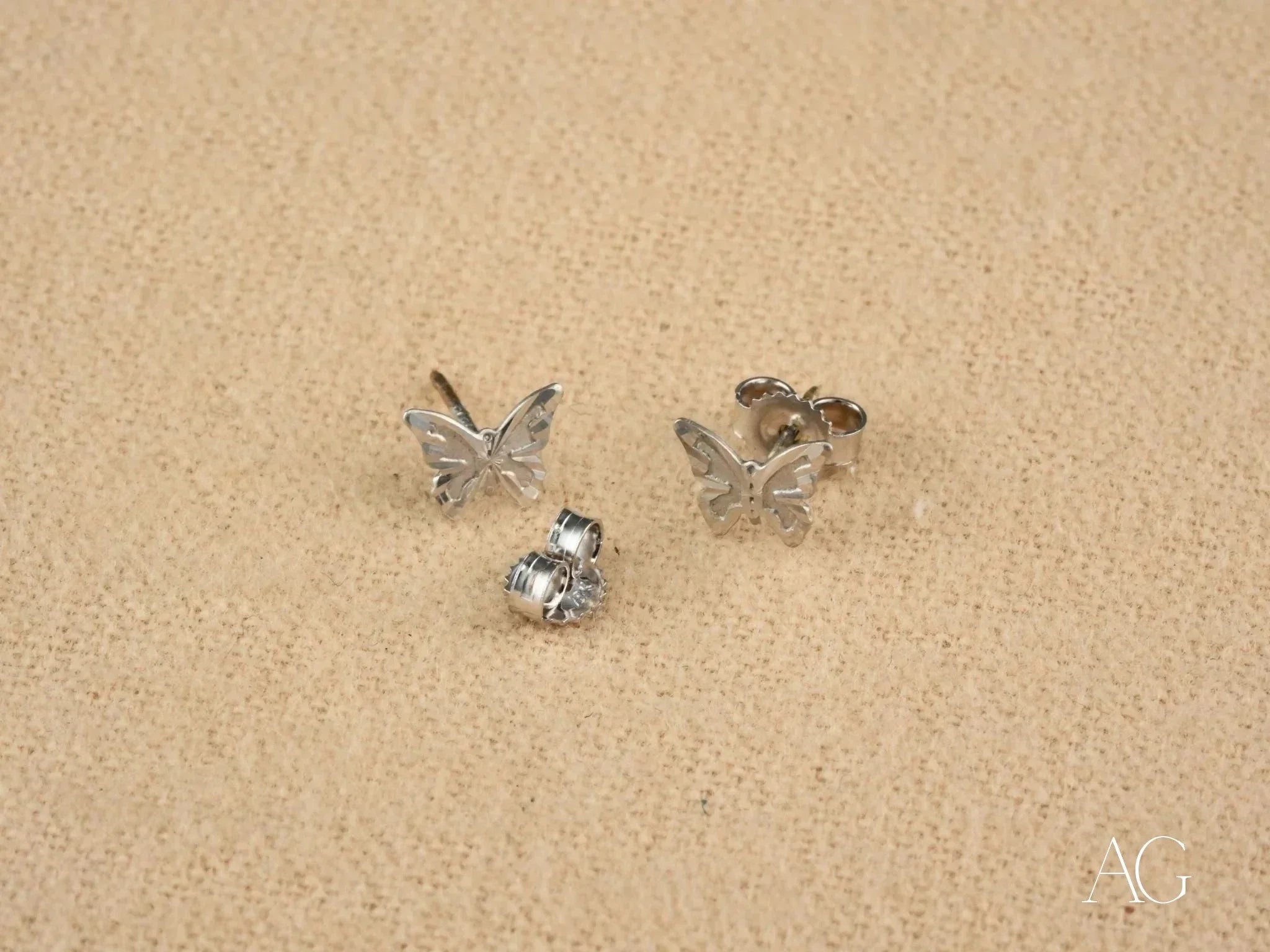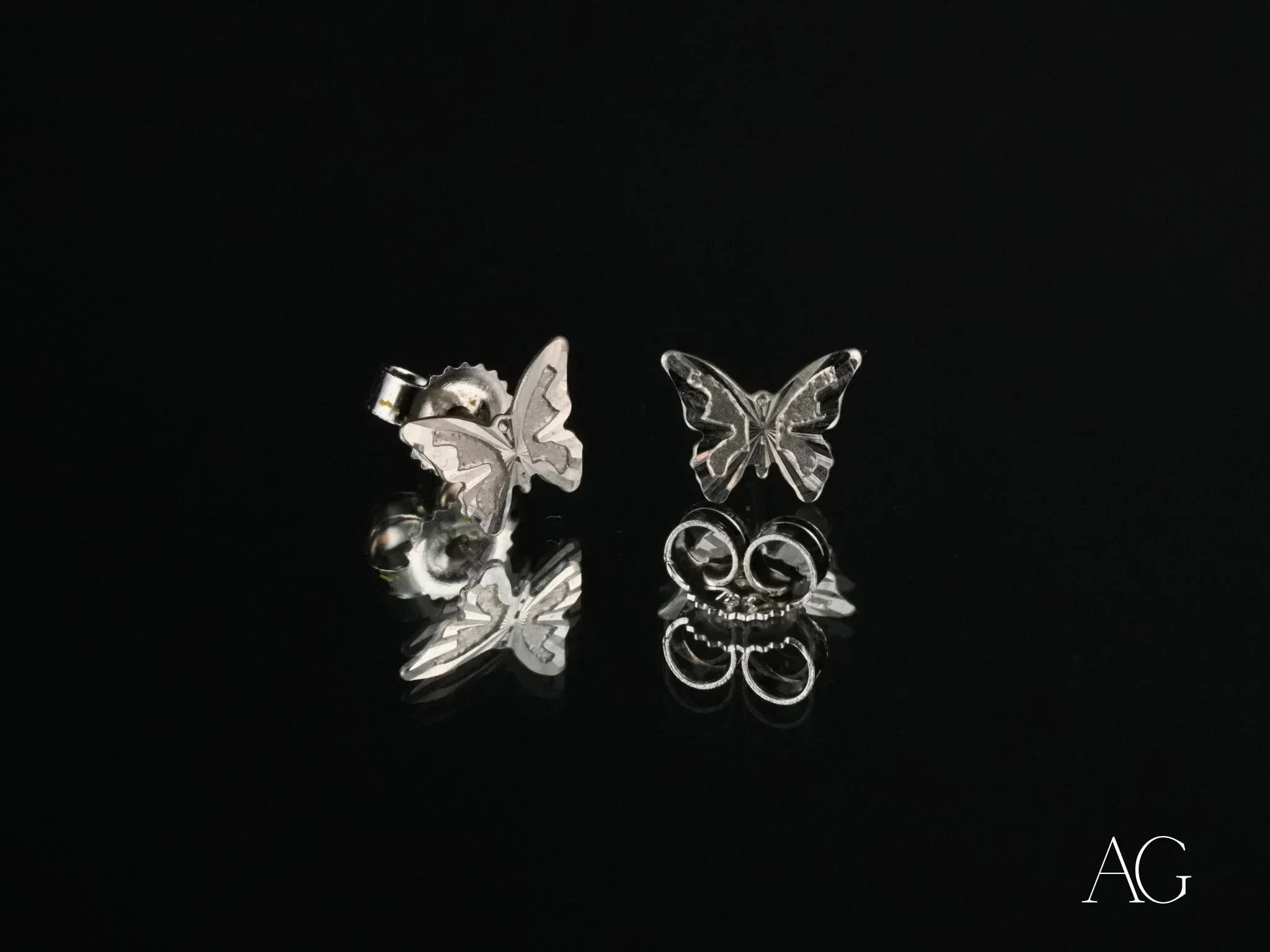 FlutterGleam – 18K White Gold Butterfly Stud Earrings
