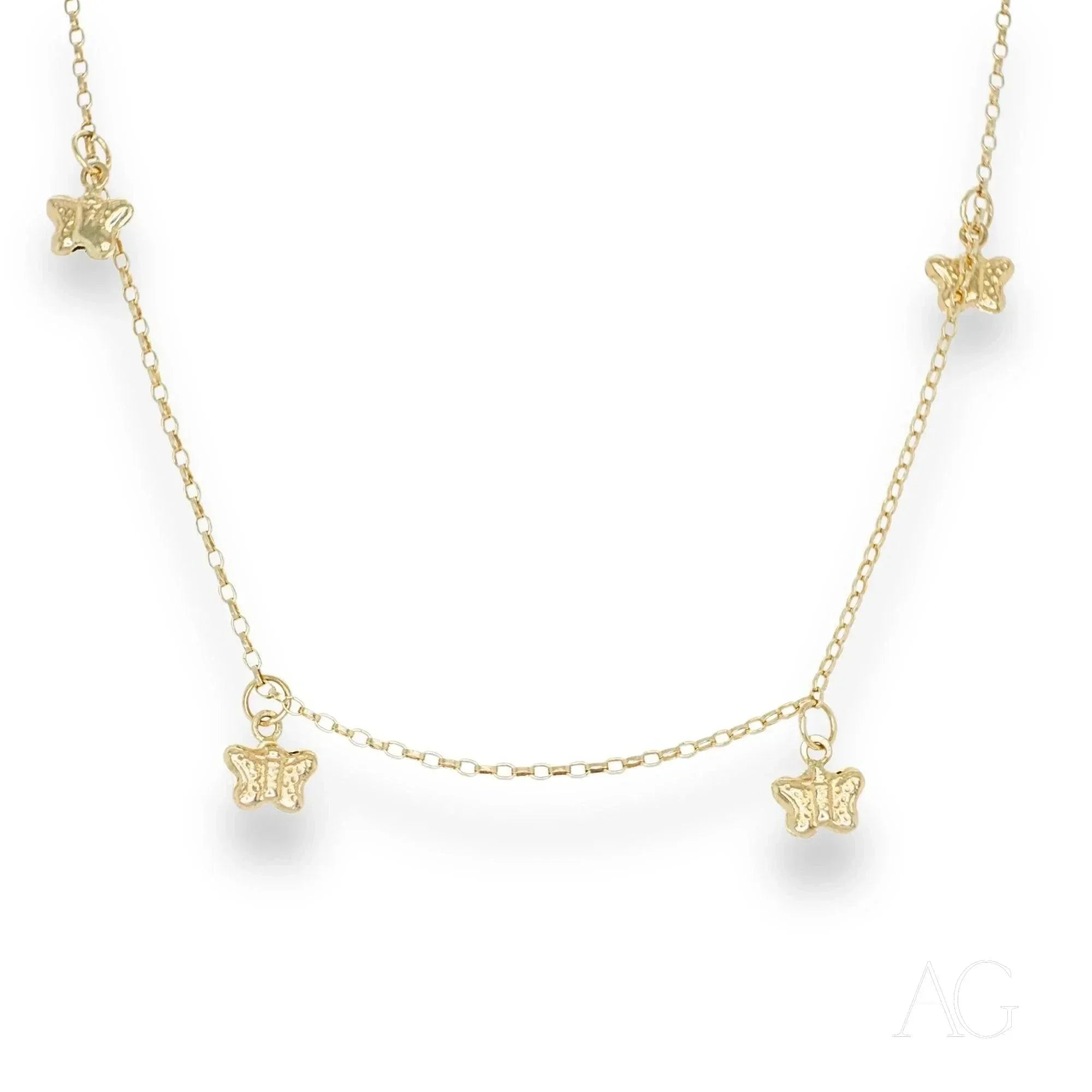 Material: 18k goldLength: 9 inchesWeight: 1.3 gramsCharms: Small butterfly pendantsClasp Type: Secure clasp