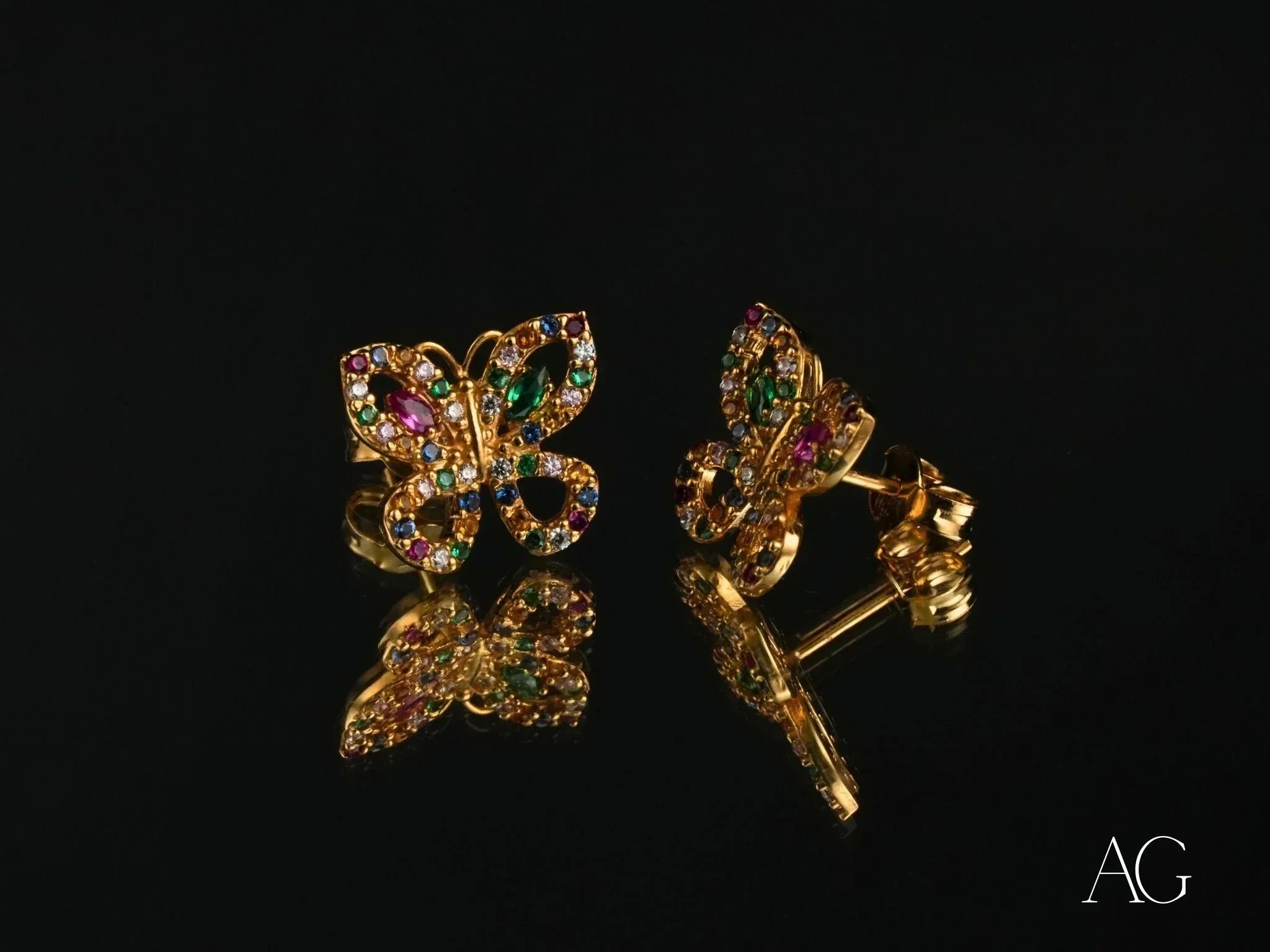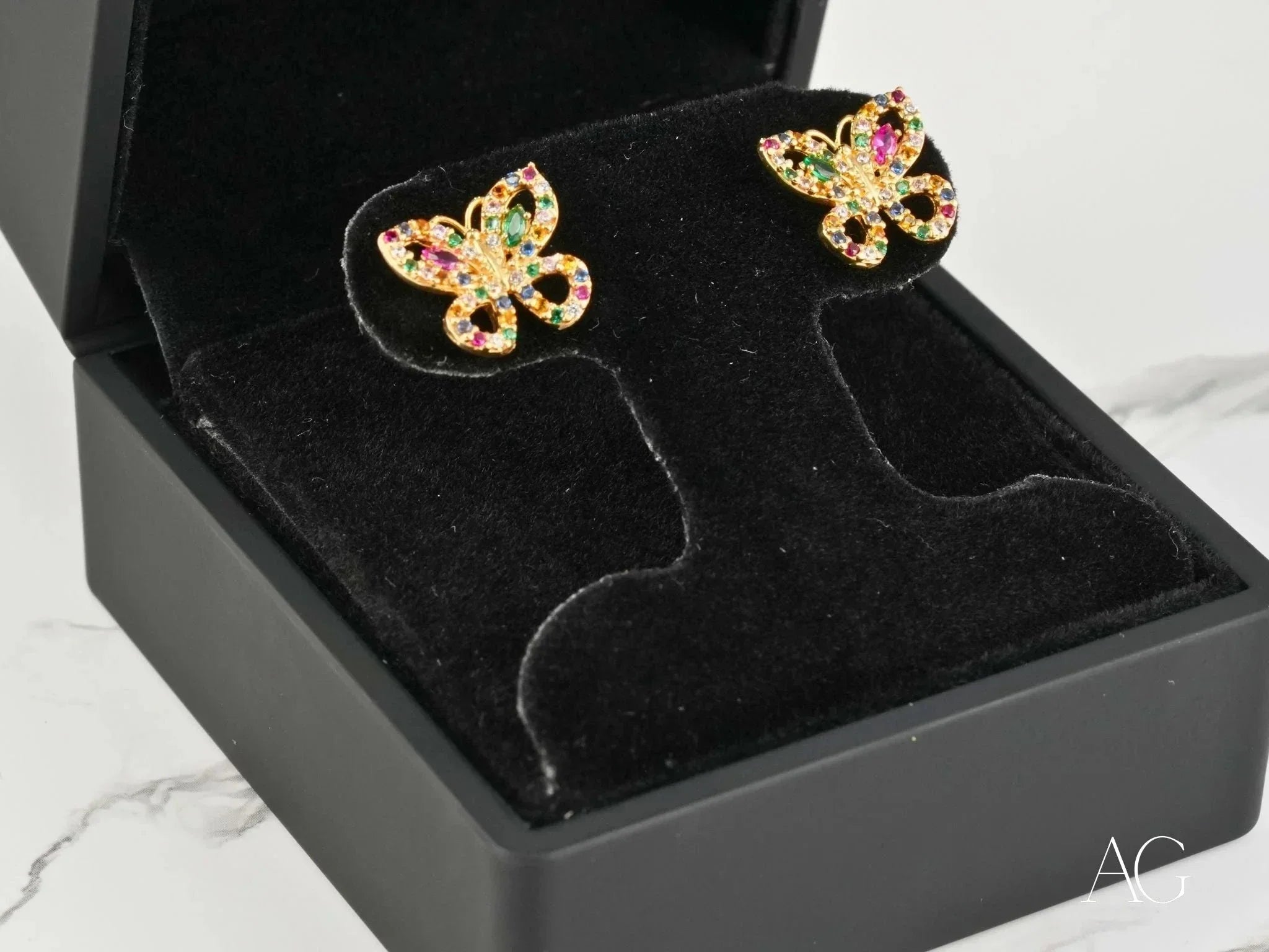 Stunning 18K Gold Multicolor CZ Butterfly Earrings