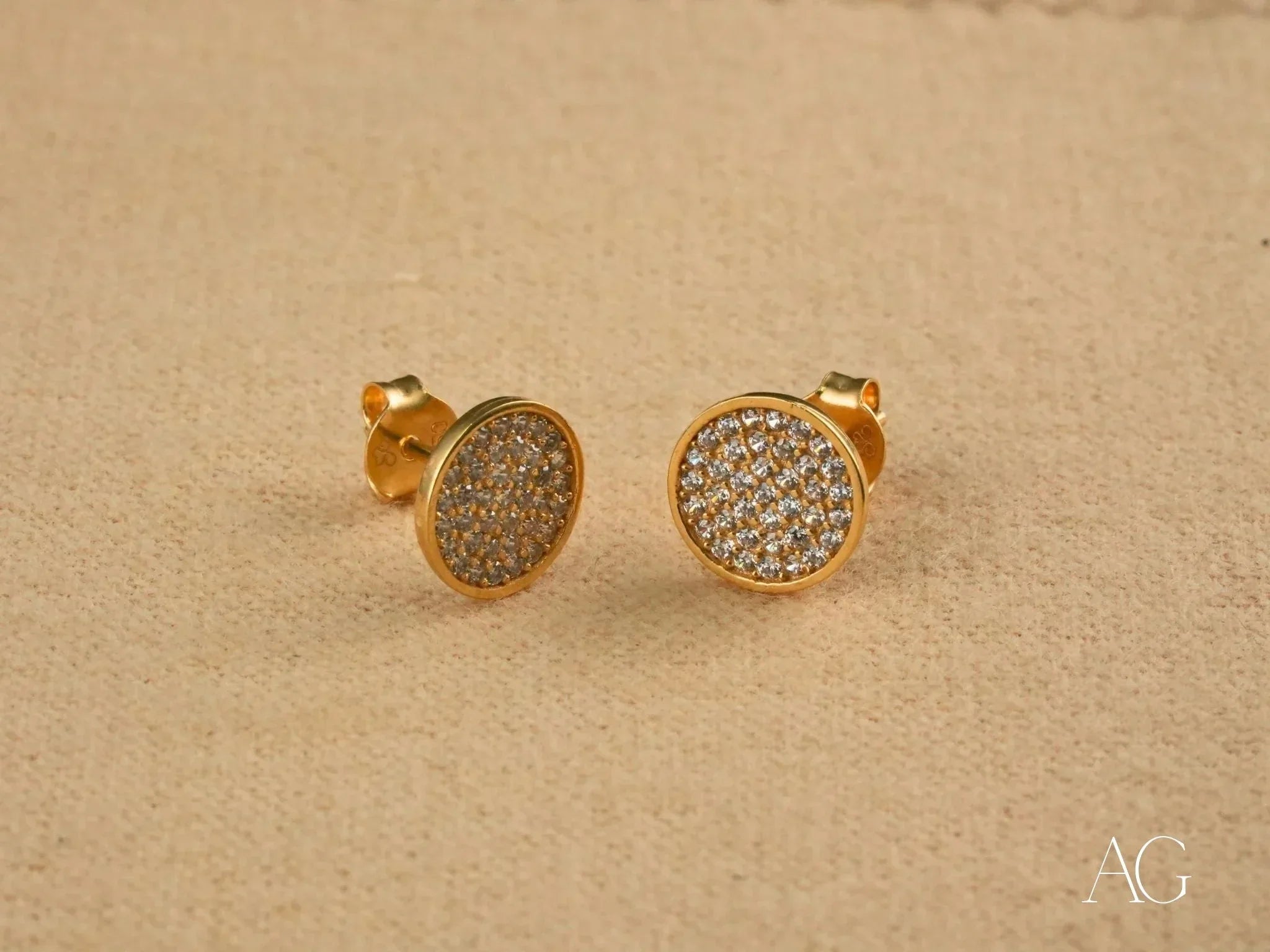 • Design: Round-shaped stud earrings with CZ embellishments