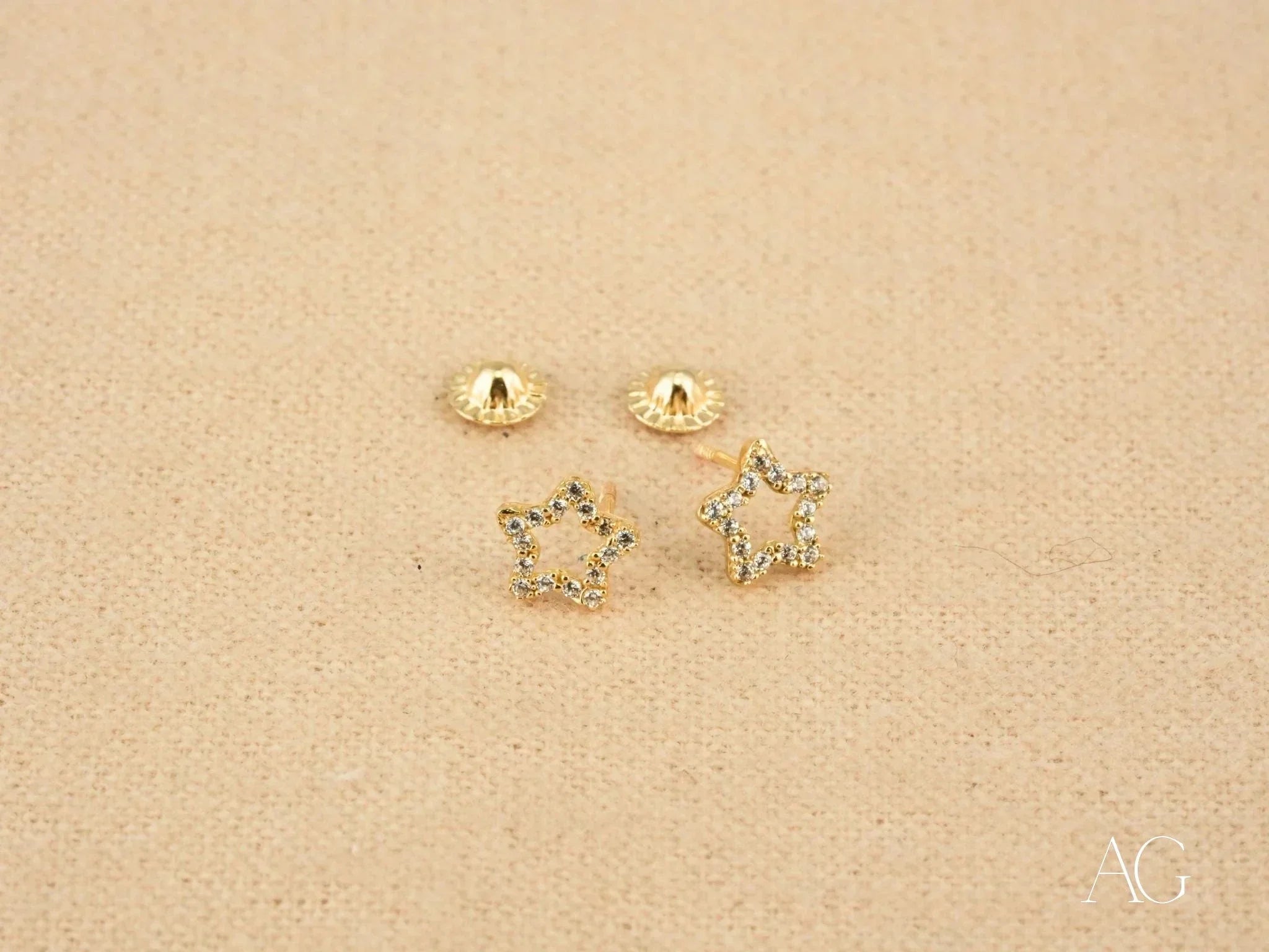 18K Gold Star Celestial Sparkle: CZ Earrings with Screw Backs