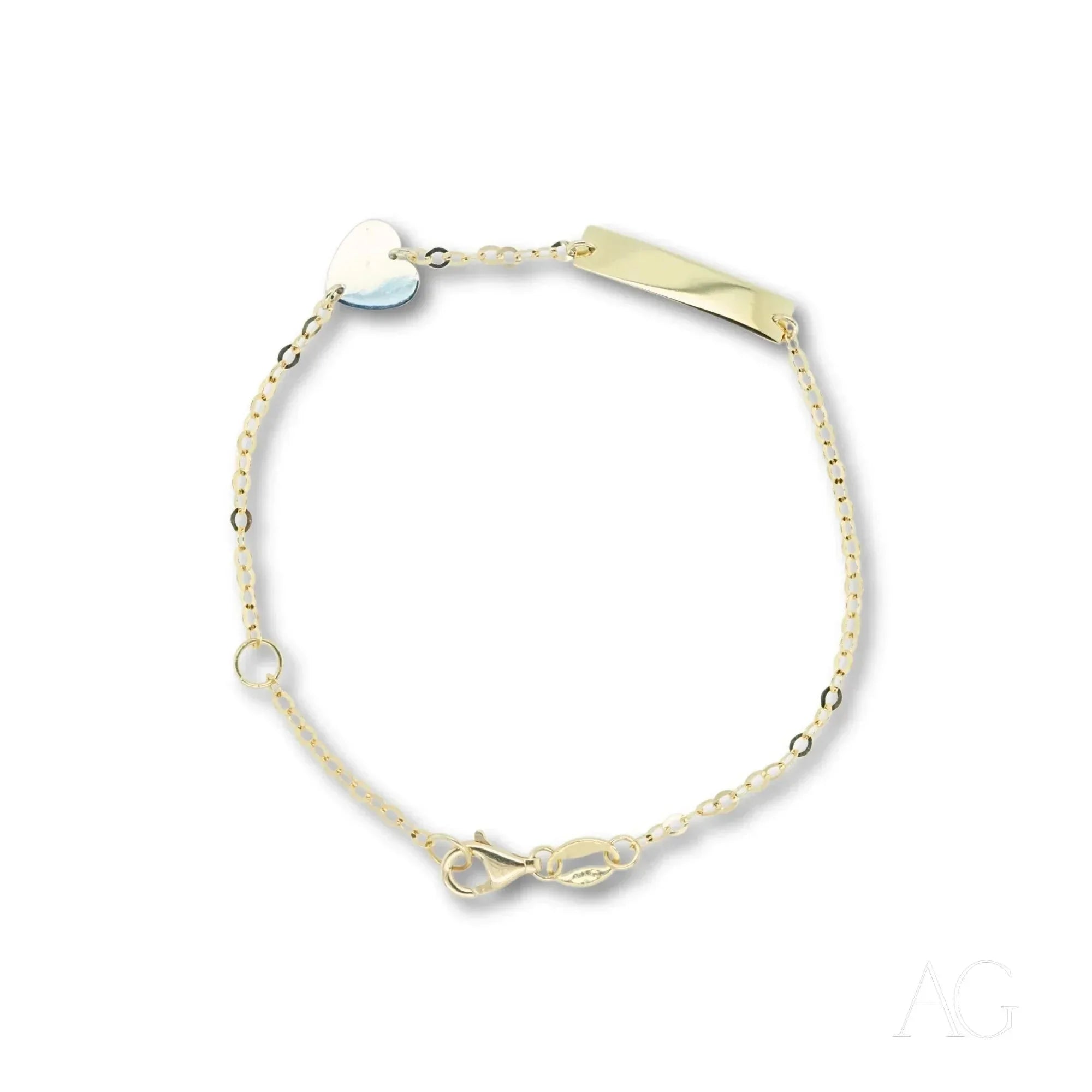 Charming Heart Motif: The shimmering white gold heart, a symbol of enduring affection, elevates this bracelet from a simple accessory to a precious token of love. This exquisite gold heart motif adds a touch of sophistication, perfect for marking special milestones.Customizable ID Plate: Transform this bracelet into a personalized heirloom by engraving the ID plate with a name, initials, a cherished date, or even a short, heartfelt message. This bespoke touch creates a unique and unforgettable keepsake.Lightweight and Comfortable: Crafted for carefree wear, this 1.4-gram bracelet allows children to move and play with ease. Its lightweight design ensures all-day comfort without compromising its elegant aesthetic.