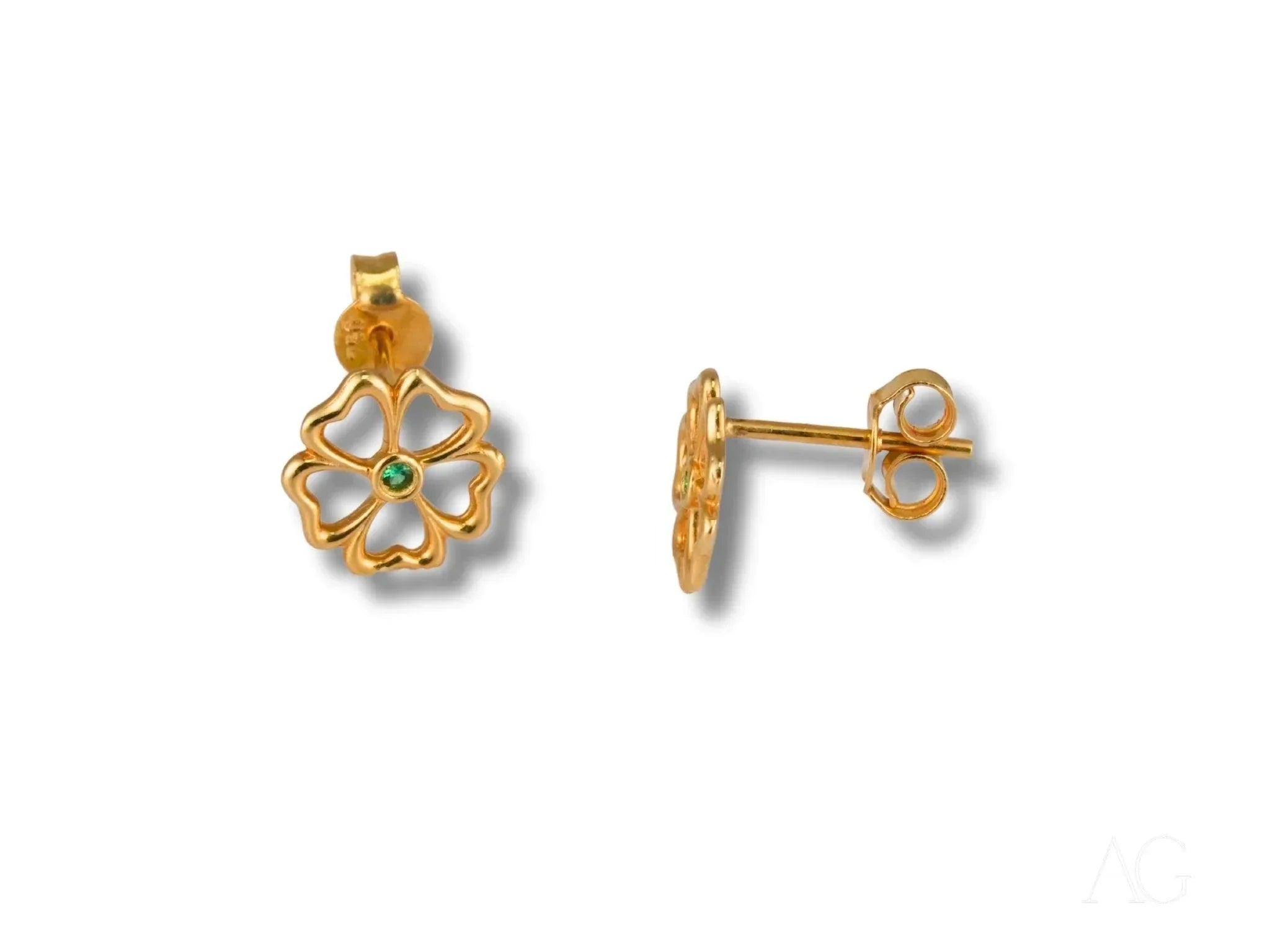 Lucky Charm Earrings – 18K Gold Green CZ Clover Earrings