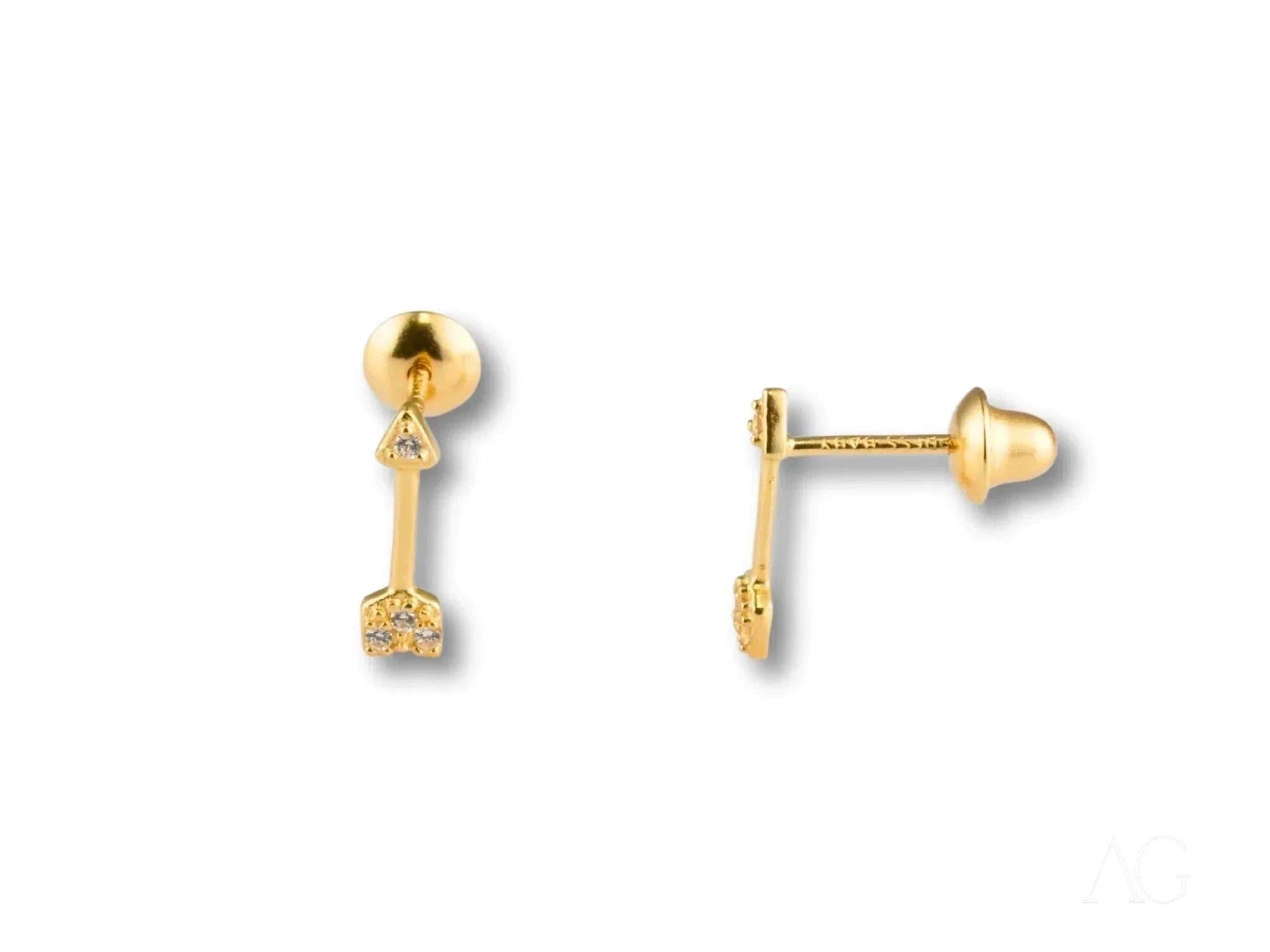• 1x Pair of Cupid’s Arrow: 18k Gold CZ Arrow Earrings