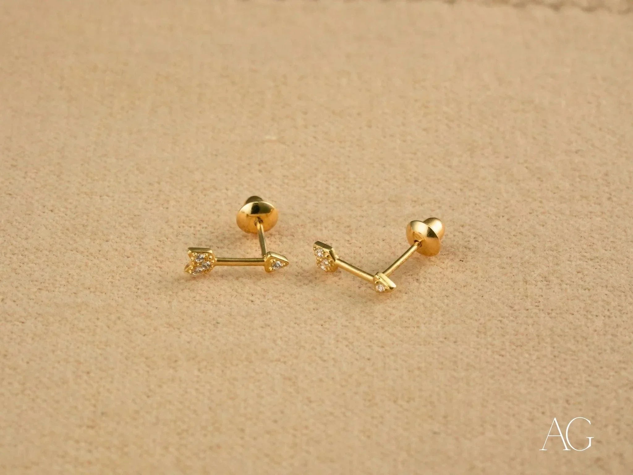 Cupid’s Arrow: 18k Gold CZ Arrow Earrings