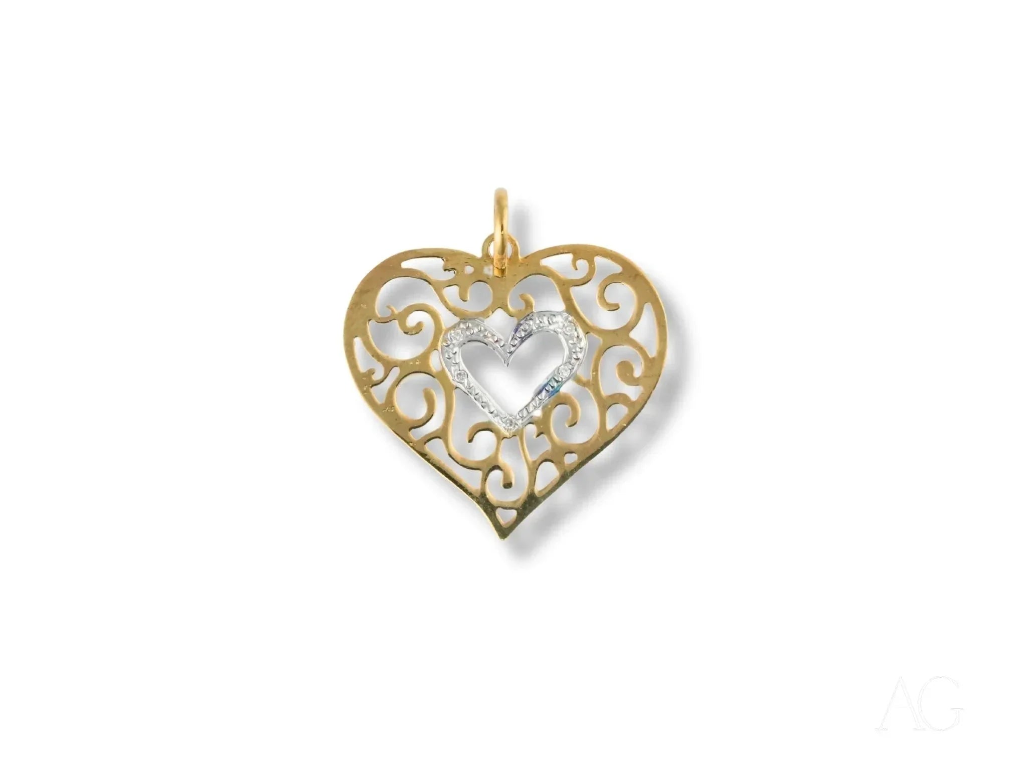 Premium 18k Solid Gold Craftsmanship: Indulge in the luxurious feel of high-quality 18k solid gold, expertly crafted with a two-tone finish for striking elegance and captivating contrast. This art gold jewelry piece is designed to last a lifetime.Symbolic Double Heart Design: Two hearts intertwined as one, the double heart pendant speaks volumes of unity, enduring love, and an unbreakable connection, making it a truly meaningful and symbolic piece of art gold.Radiant Cubic Zirconia Accents: The brilliance of hand-set cubic zirconia stones enhances the pendant's allure with a captivating, diamond-like sparkle that catches the eye and radiates beauty.Lightweight and Luxurious: Weighing only 0.9 grams, this 18k solid gold double heart pendant drapes gracefully and comfortably, offering subtle sophistication for everyday wear.Versatile Expression of Style: From casual chic to elegant evenings, this double heart pendant effortlessly complements any attire, adding a touch of romance and timeless charm.