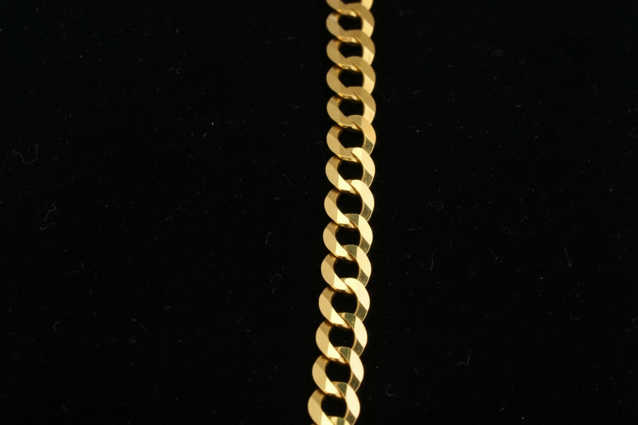Each link sits flush and tight, creating a bold 5.25mm profile that catches the light from every angle while remaining comfortable for all‑day wear. Whether you wear it over a T‑shirt, under a dress shirt, or stacked with other pieces, this is the chain that quietly says you take your style — and your gold — seriously.