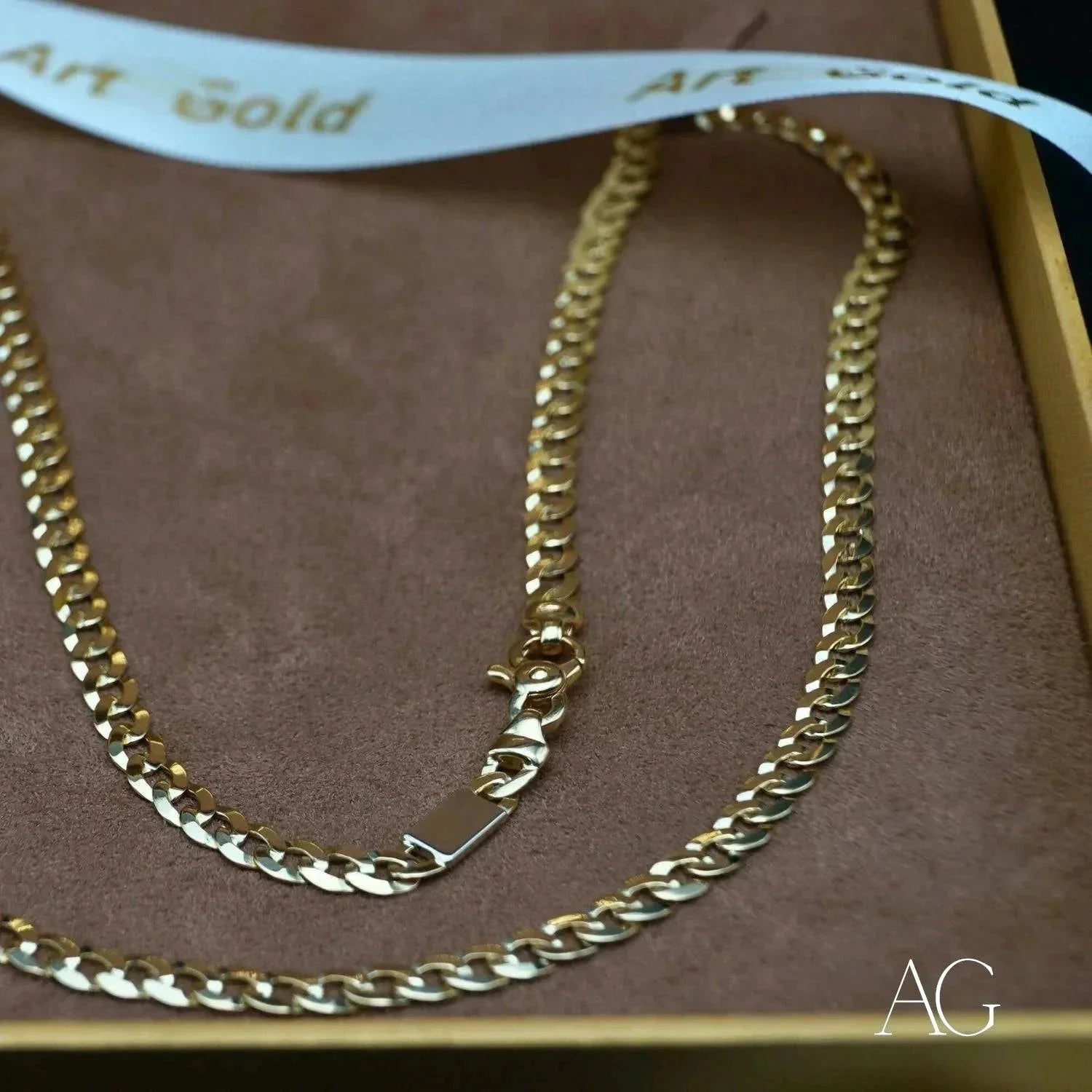 Meticulously Crafted: Each link is precisely crafted by skilled artisans, ensuring a flawless fit, a luxurious finish, and a piece that will be treasured for generations.Exclusive Design: As part of our exclusive Art Gold collection, this cuban 18k gold chain is a rare find for those who value exclusivity, impeccable quality, and timeless design.