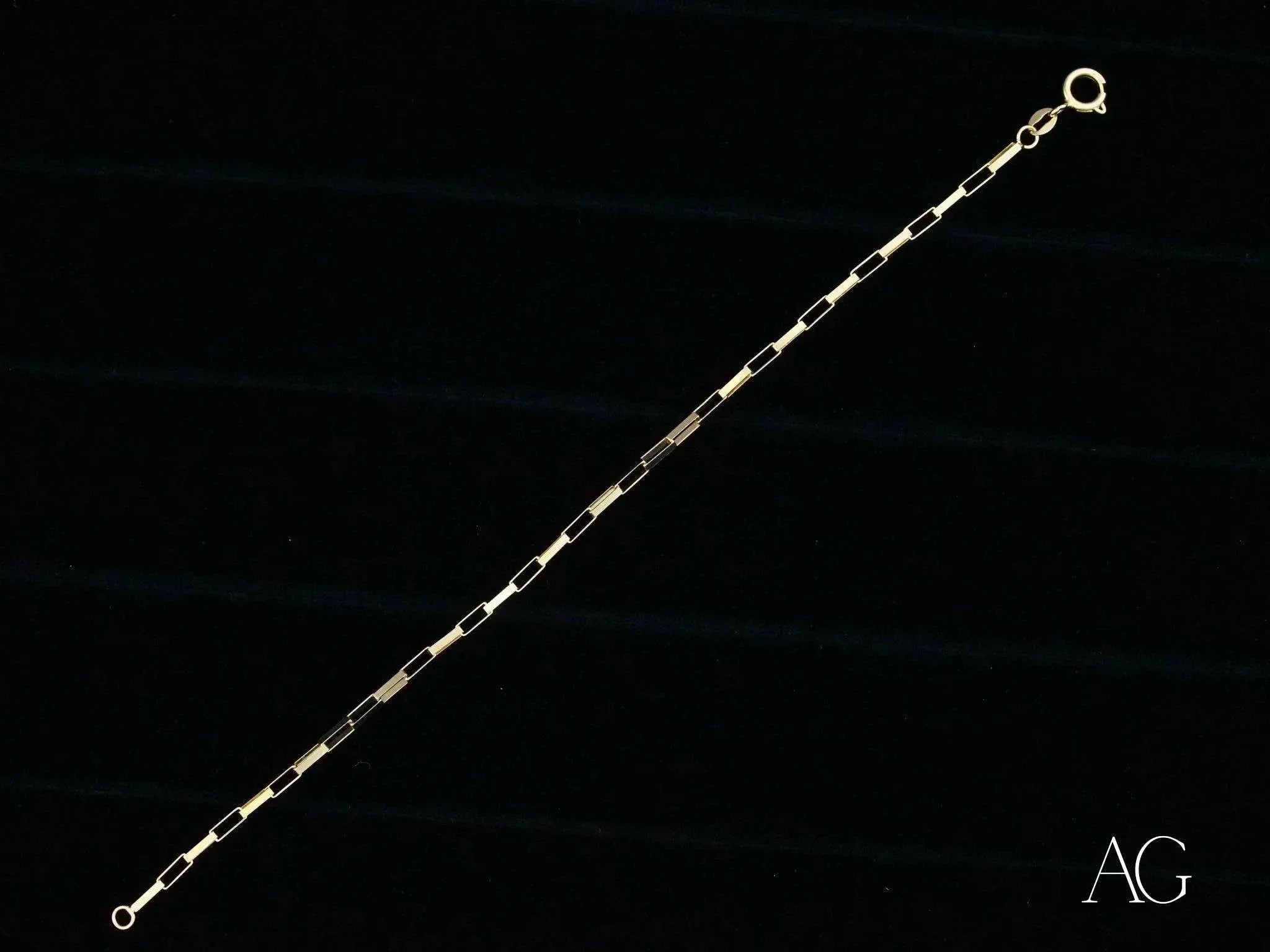 • Unveiling the Epitome of Elegance: Introducing the Solid 18k Gold Brick Link Bracelet, a breathtaking piece of art gold jewelry meticulously crafted to embody minimalist sophistication. Each interlocking brick link, forged from luxurious solid 18k gold, whispers of timeless style and enduring quality. This delicate bracelet, weighing a mere 2.1 grams and measuring 6.5 inches, drapes effortlessly on the wrist, providing a comfortable and captivating presence. The secure spring ring lock ensures your precious art gold jewelry remains safely adorned, perfect for everyday radiance or special occasion glamour.