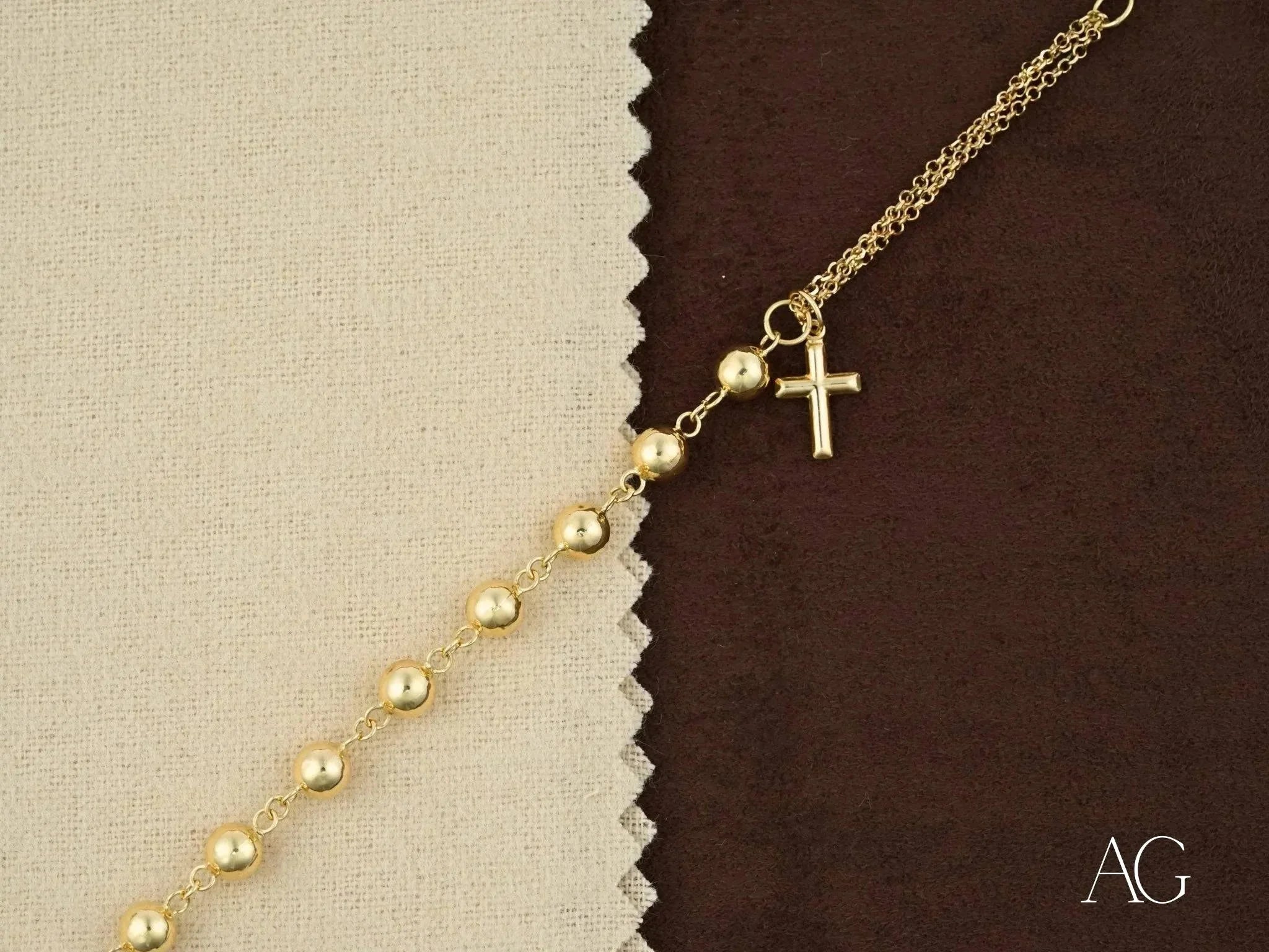 • Design: Showcases radiant polished gold beads and an exquisitely detailed cross motif, secured with a sturdy spring ring clasp