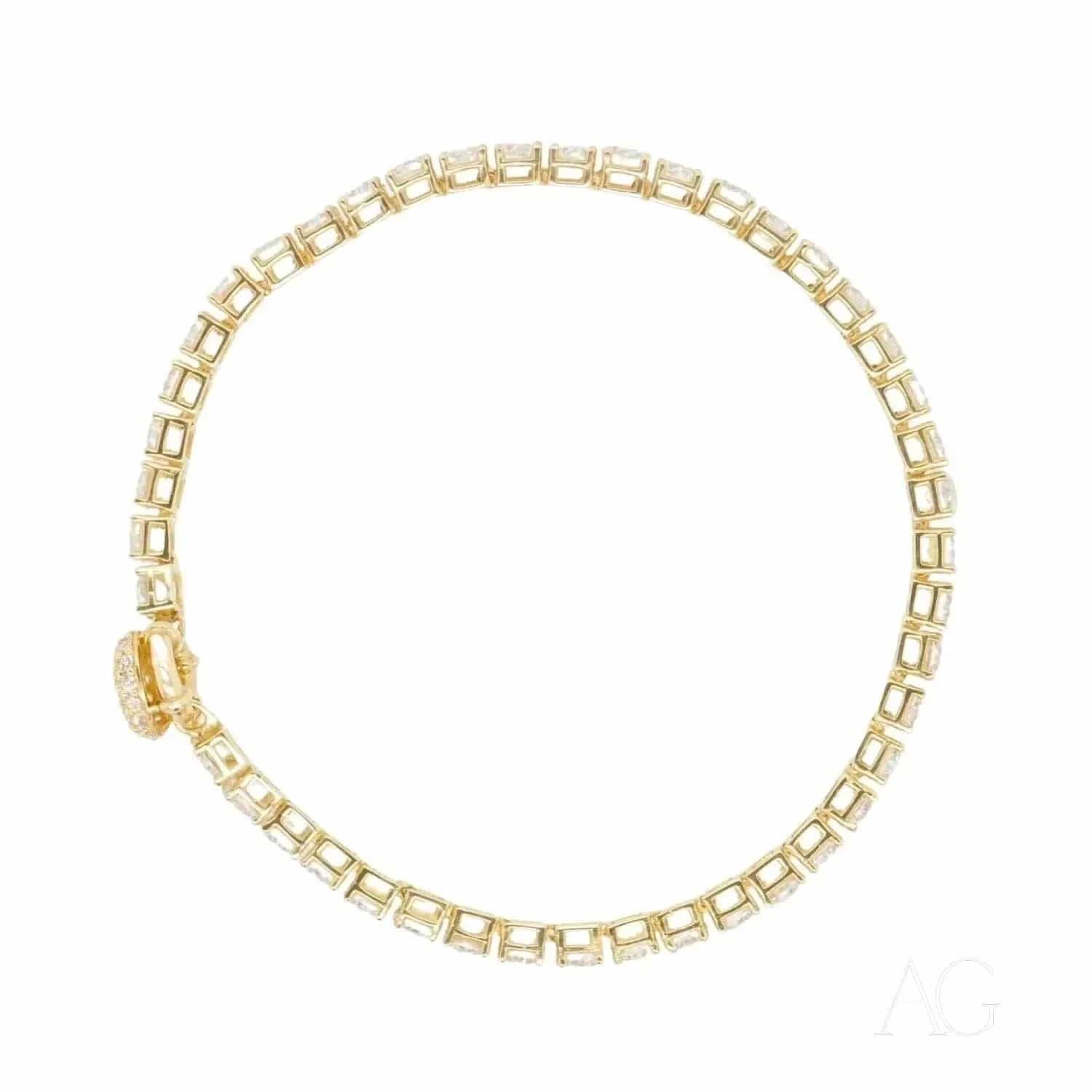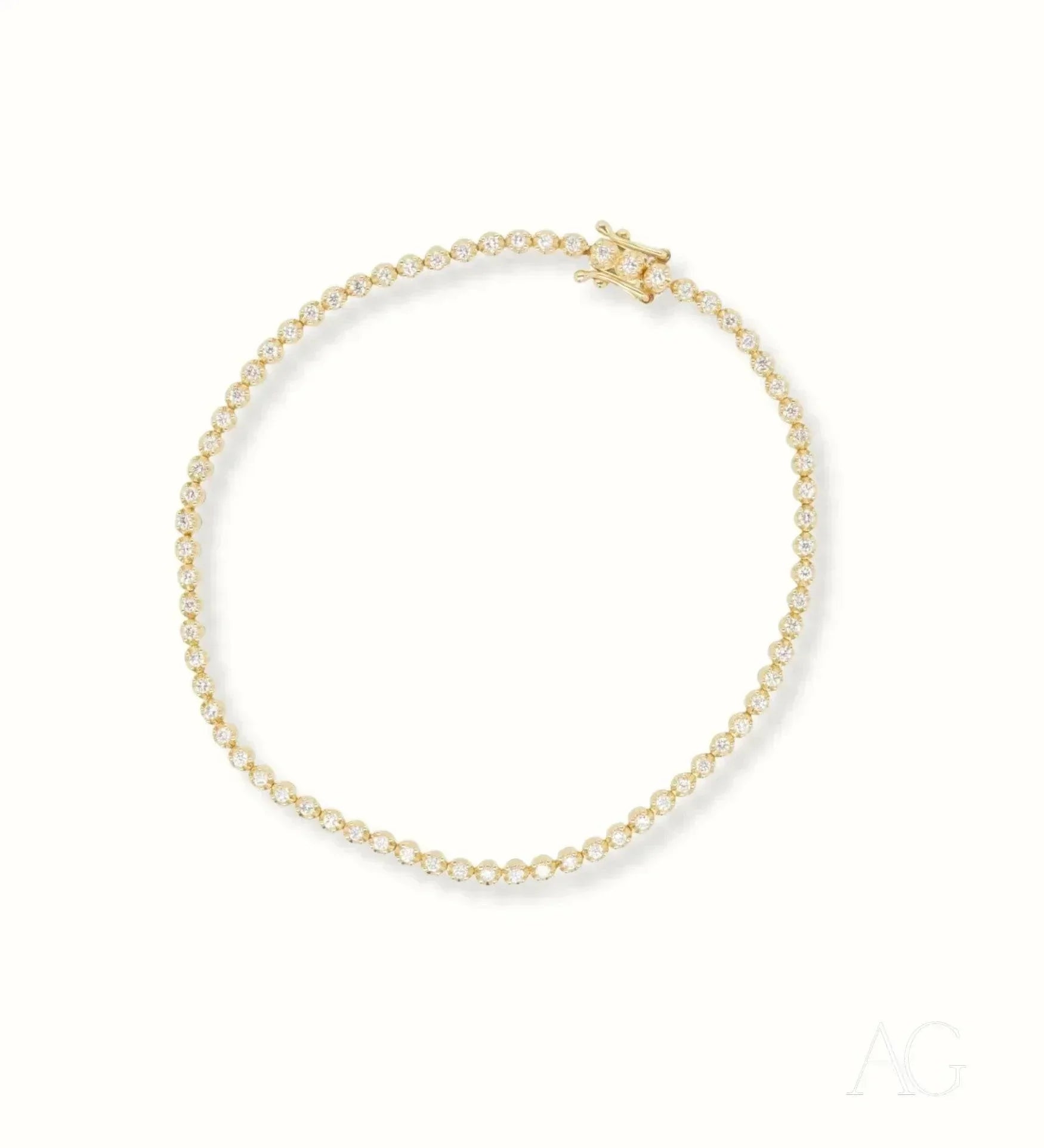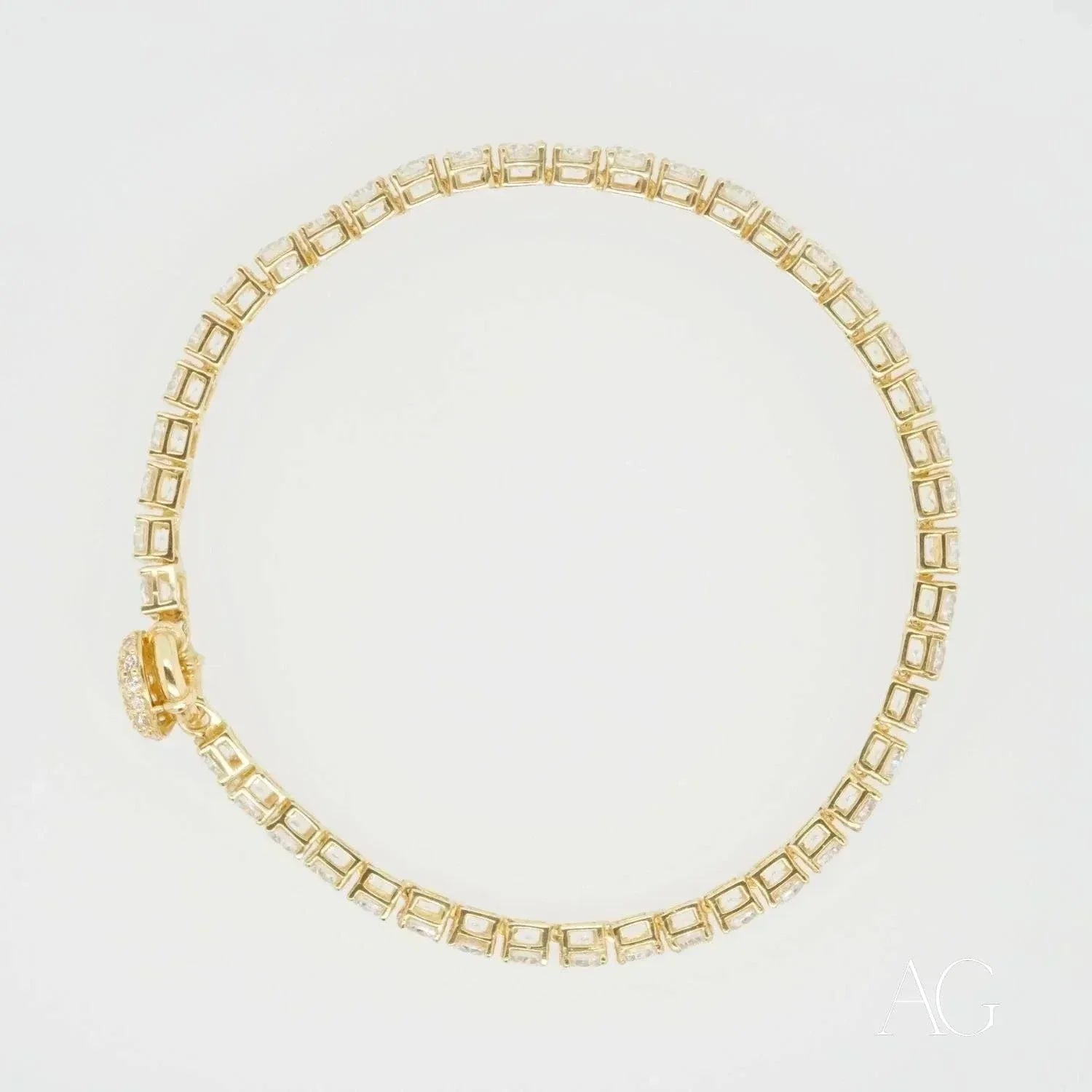 A Symphony of Sparkle and Sophistication In the vibrant heart of the Greater Boston Area, Massachusetts, Art Gold Jewelry proudly presents a masterpiece of elegance and brilliance: the 18k Tennis Bracelet, meticulously adorned with dazzling zirconia. More than a mere accessory, this bracelet is a declaration of luxury and refined taste, designed for those who appreciate the artistry of meticulously crafted jewelry. Watch it shimmer and dance with every turn of your wrist, catching the light and captivating all who behold it. This exquisite piece from Art Gold Jewelry is the perfect complement to any ensemble, elevating your style to new heights of sophistication.