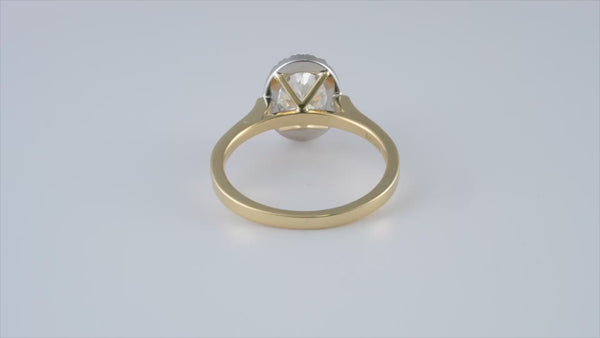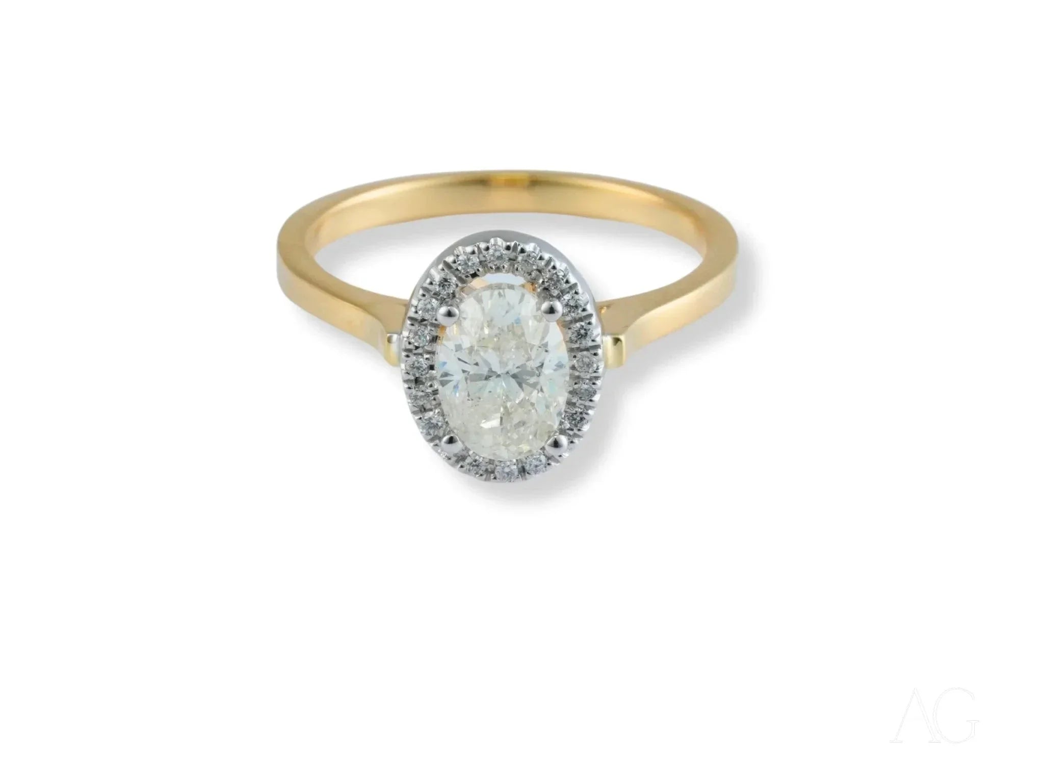 Imagine a proposal that echoes through eternity, a moment captured by a ring as timeless as your love. The Eternal Halo: 18k Gold Engagement Ring with 1.22 Ct Oval Diamond and Halo embodies this everlasting promise. This exquisite ring showcases a breathtaking 1.22 Ct oval diamond, its brilliance amplified by a delicate halo of shimmering diamonds. Crafted in luxurious 18k gold, the Eternal Halo engagement ring isn't just a piece of jewelry; it's a testament to a love that transcends time.