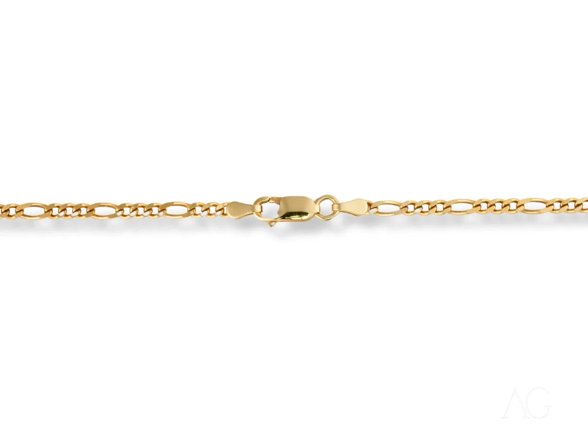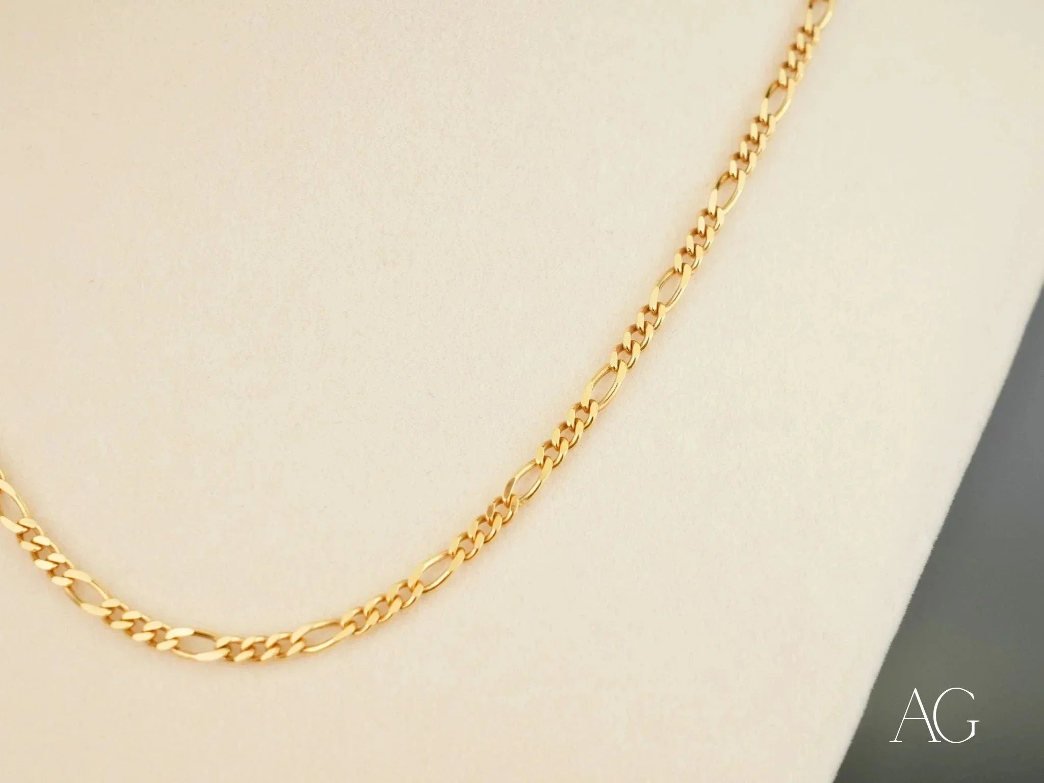 The Eternal Prestige 18K Gold Figaro Chain is more than just a piece of jewelry; it's an heirloom in the making. A symbol of enduring elegance and impeccable Italian artistry, this 18K gold Figaro makes a statement whether worn daily or for special occasions. Its versatility allows it to shine brilliantly on its own or elevate any pendant with its timeless design.