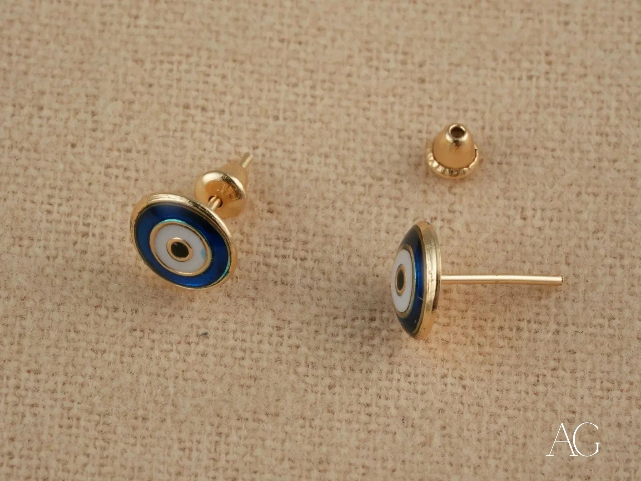 Mystic Protection: 18k Gold Evil Eye Stud Earrings