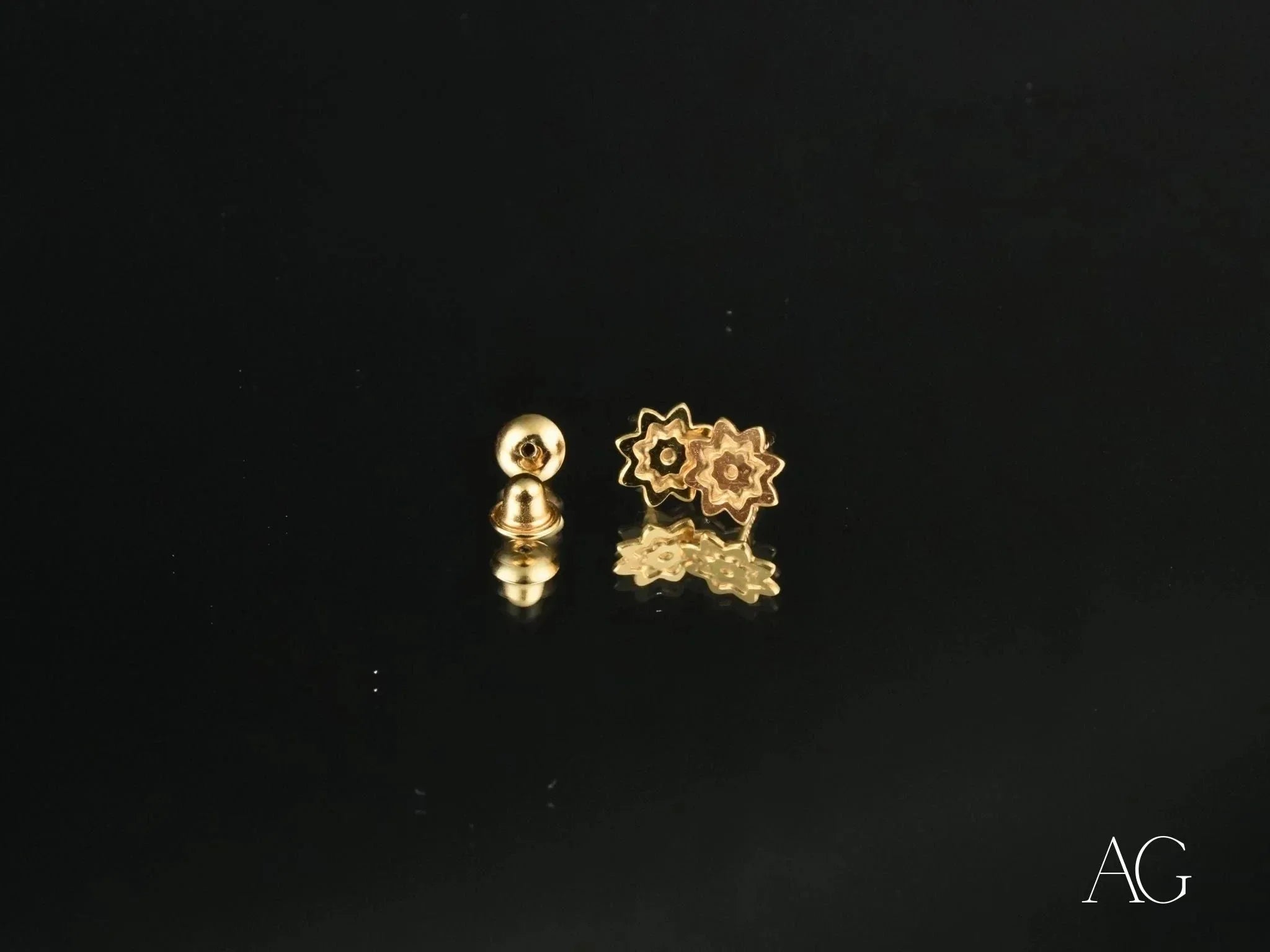 Petite Floral Design – The delicate bloom-inspired shape evokes a sense of timeless femininity, capturing the essence of nature's artistry. These floral bloom 18k studs are more than just earrings; they're a miniature work of art.