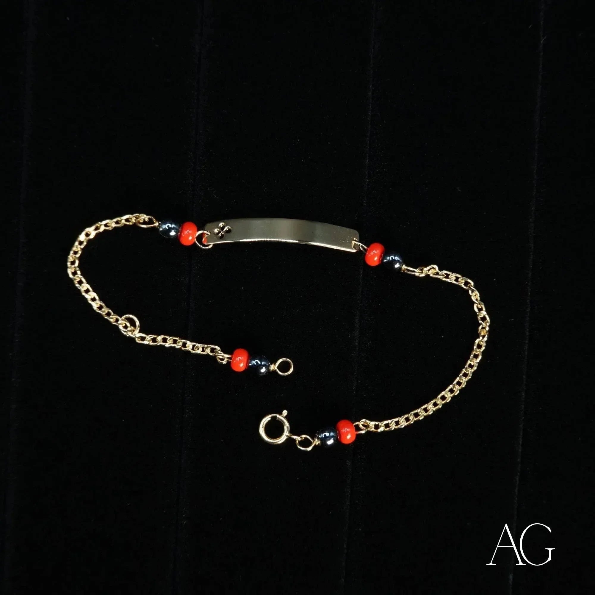 18k gold personalized bracelet with black coral for kids