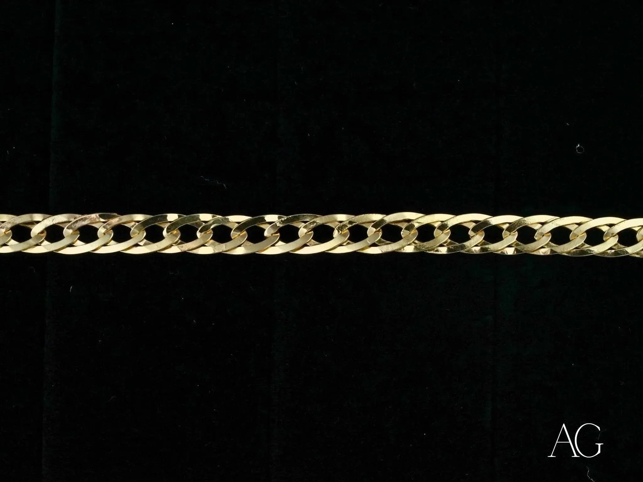 Prepare to be captivated! Elevate your style with this breathtakingly sophisticated 18k solid gold bracelet from Art Gold Jewelry. Its unique double flated link design, meticulously crafted and sleekly flattened, commands attention with contemporary flair, making it the standout accessory for any occasion, from everyday elegance to dazzling soirées. Imagine the luxurious weight of genuine 18k gold against your skin – a subtle yet powerful statement of refined taste.