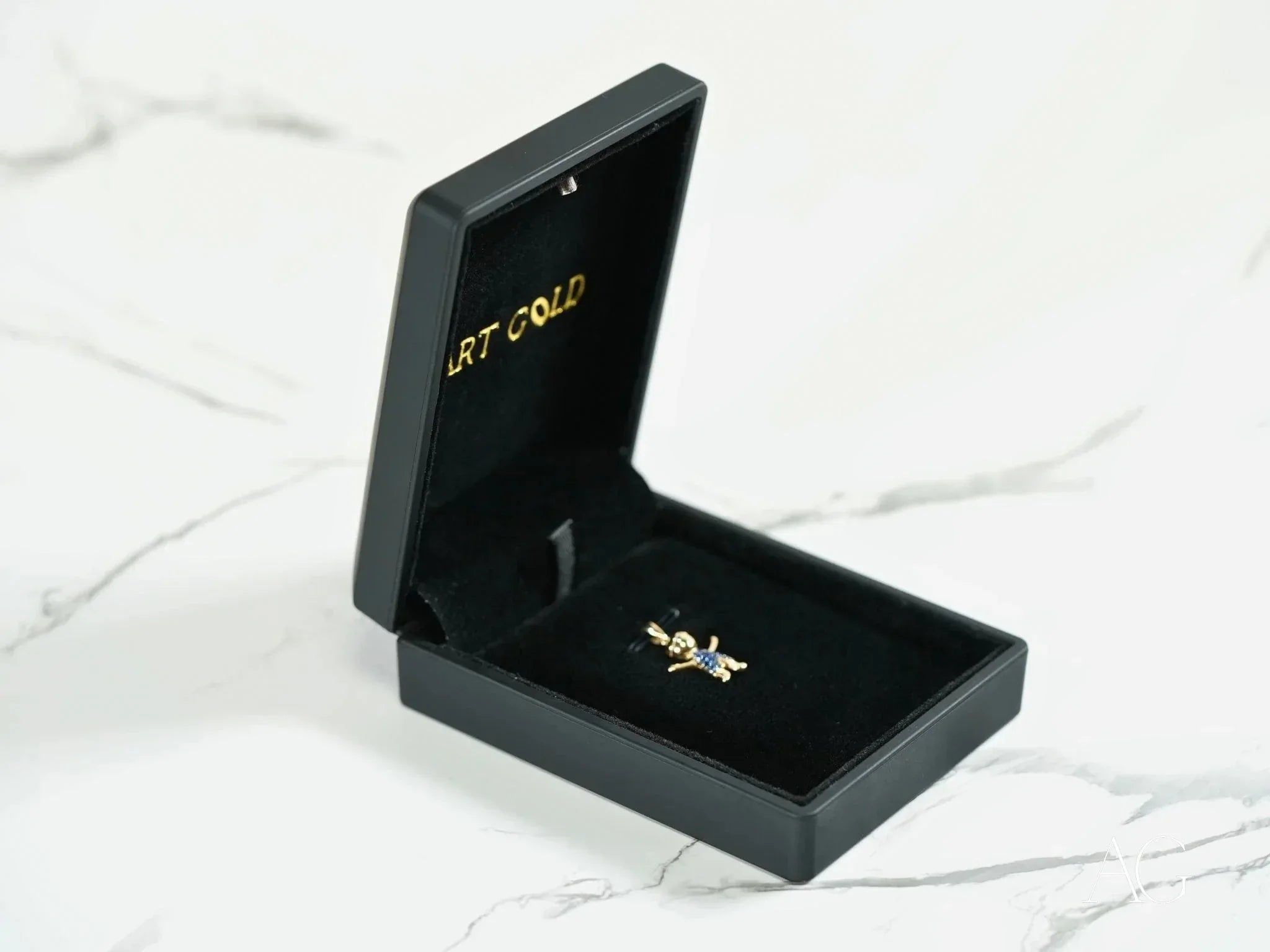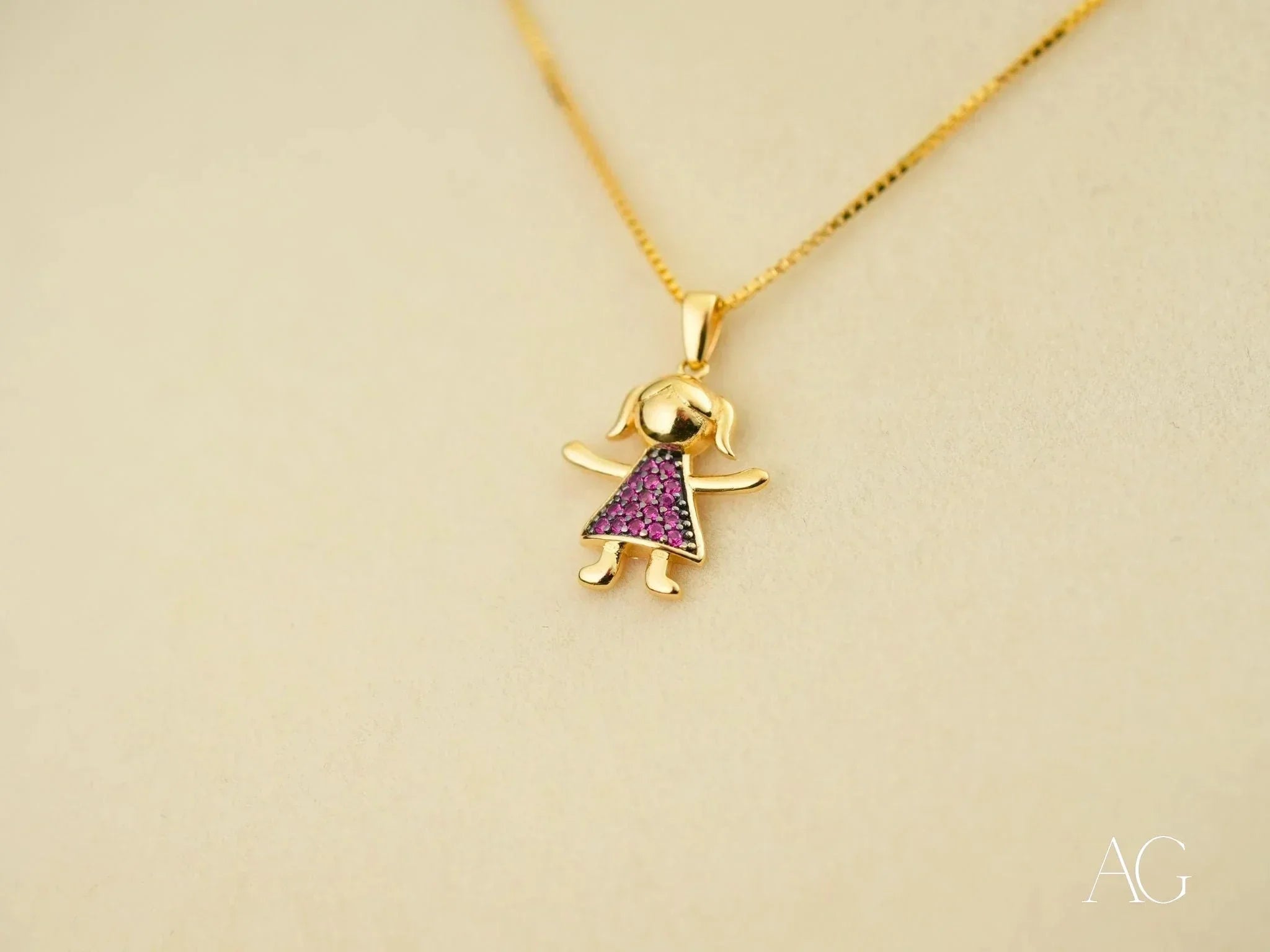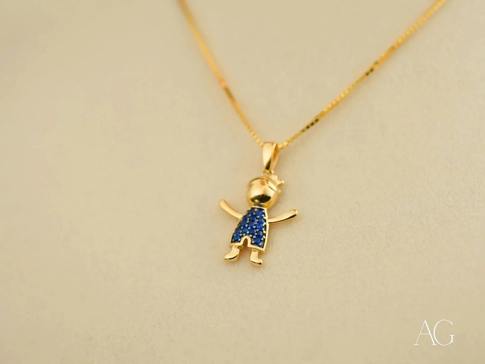 Select the design that resonates most deeply with your heart – the spirited charm of a boy or the graceful poise of a girl. This golden love pendant becomes a tangible representation of the unique connection you celebrate.